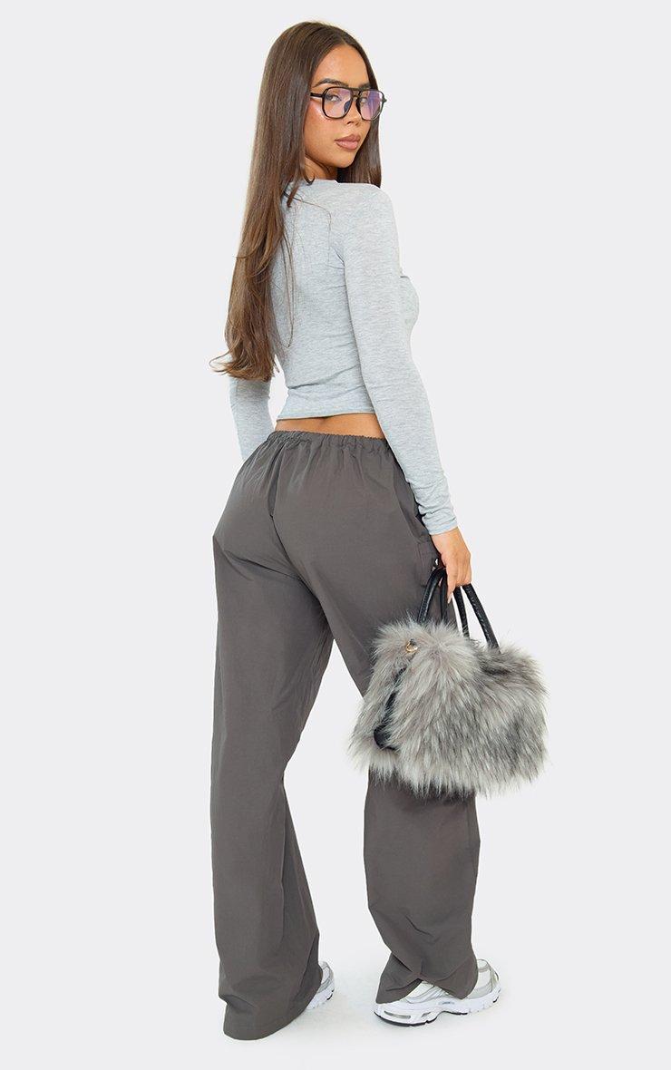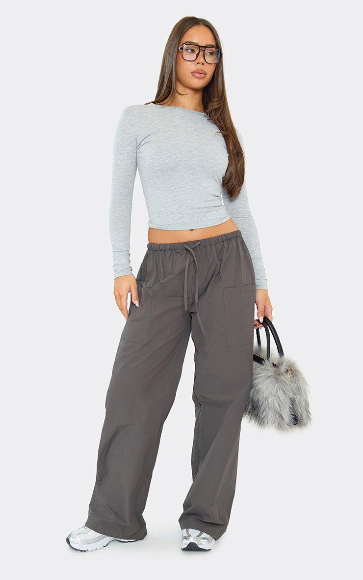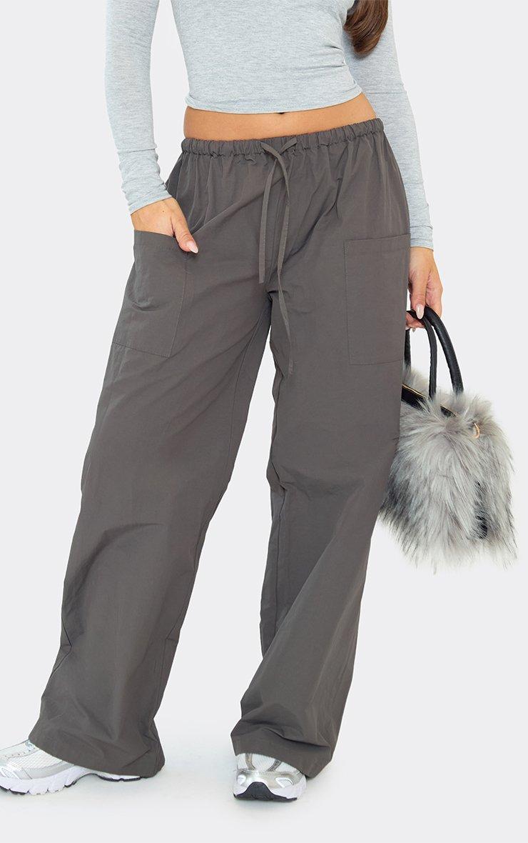 Mid Rise Utility Wide Leg Cargo Trousers In Charcoal Grey