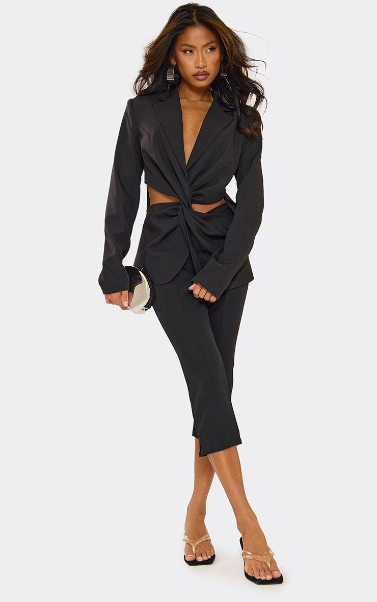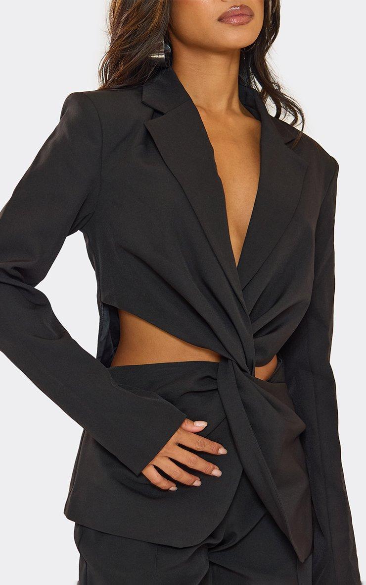 Cut Out Twist Front Detail Fitted Blazer In Black
