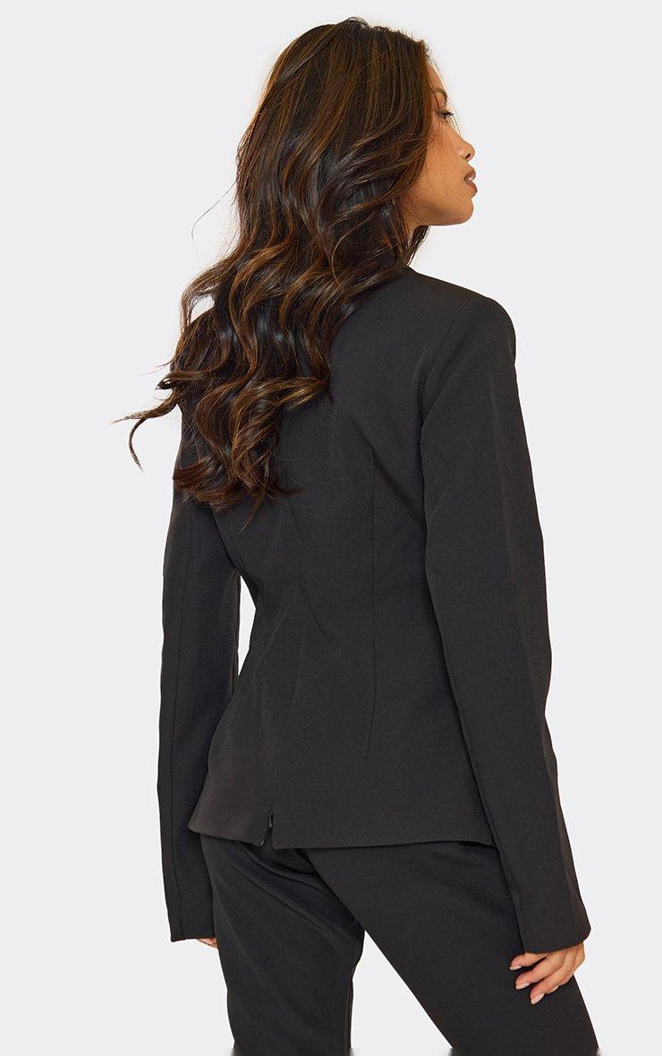 Long Sleeve Hook And Eye Corset Detail Blazer In Black