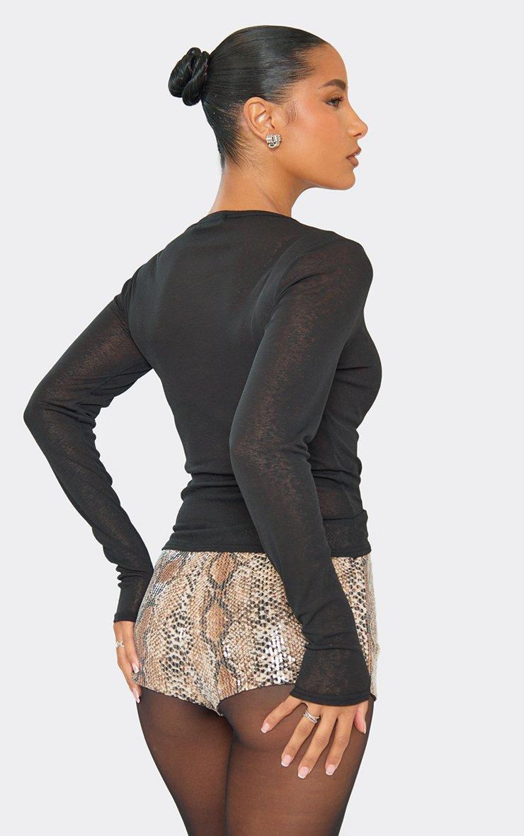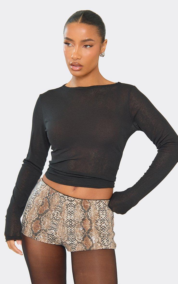 Low Waist Hot Pant Shorts In Black Sequin