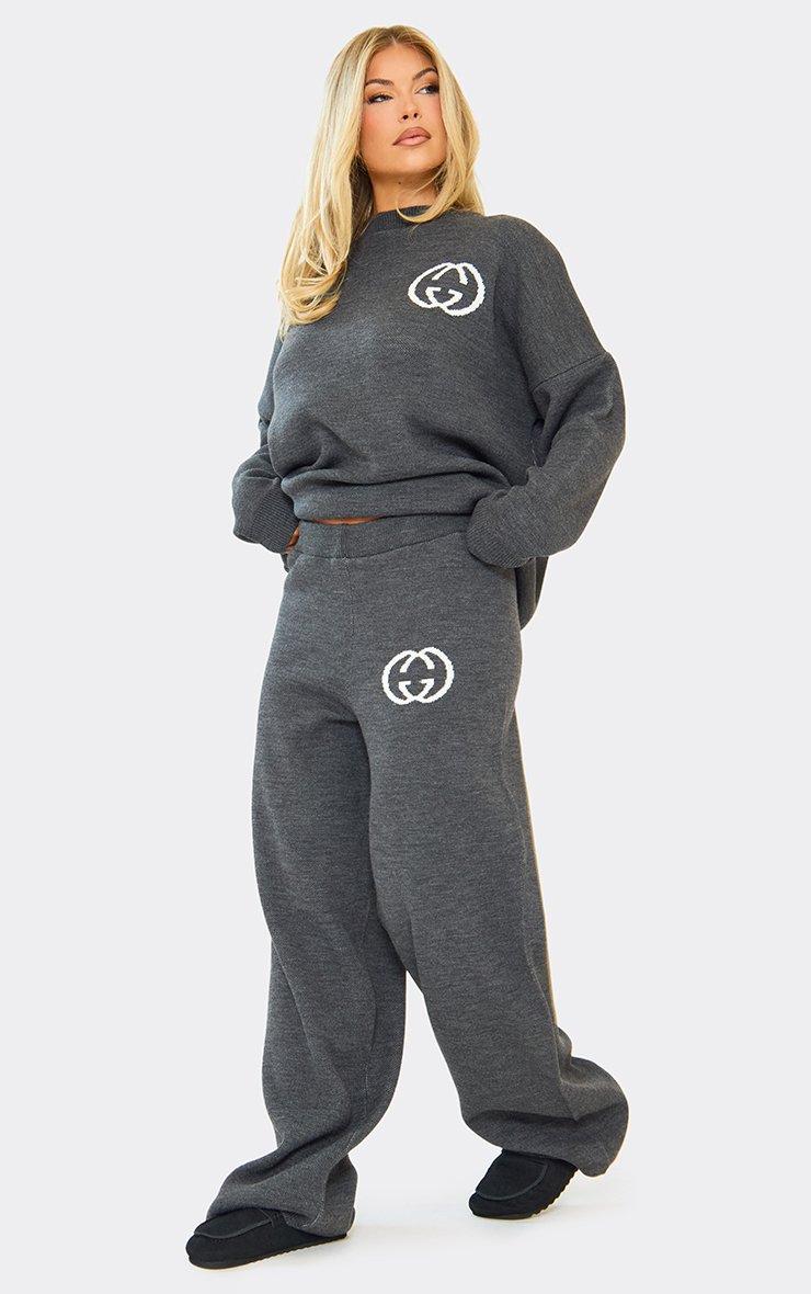 Long Sleeve Crew Neck Ego Graphic Oversized Jumper In Grey Knit