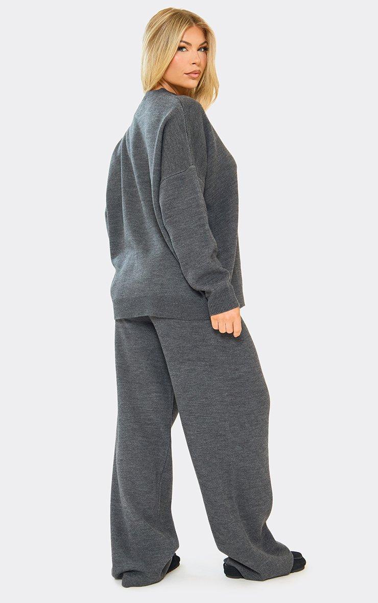 High Waist Wide Leg Joggers In Grey Knit