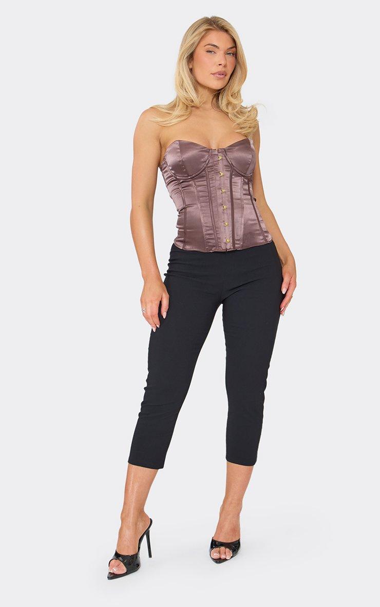 Bandeau Corset Top In Chocolate Brown Satin