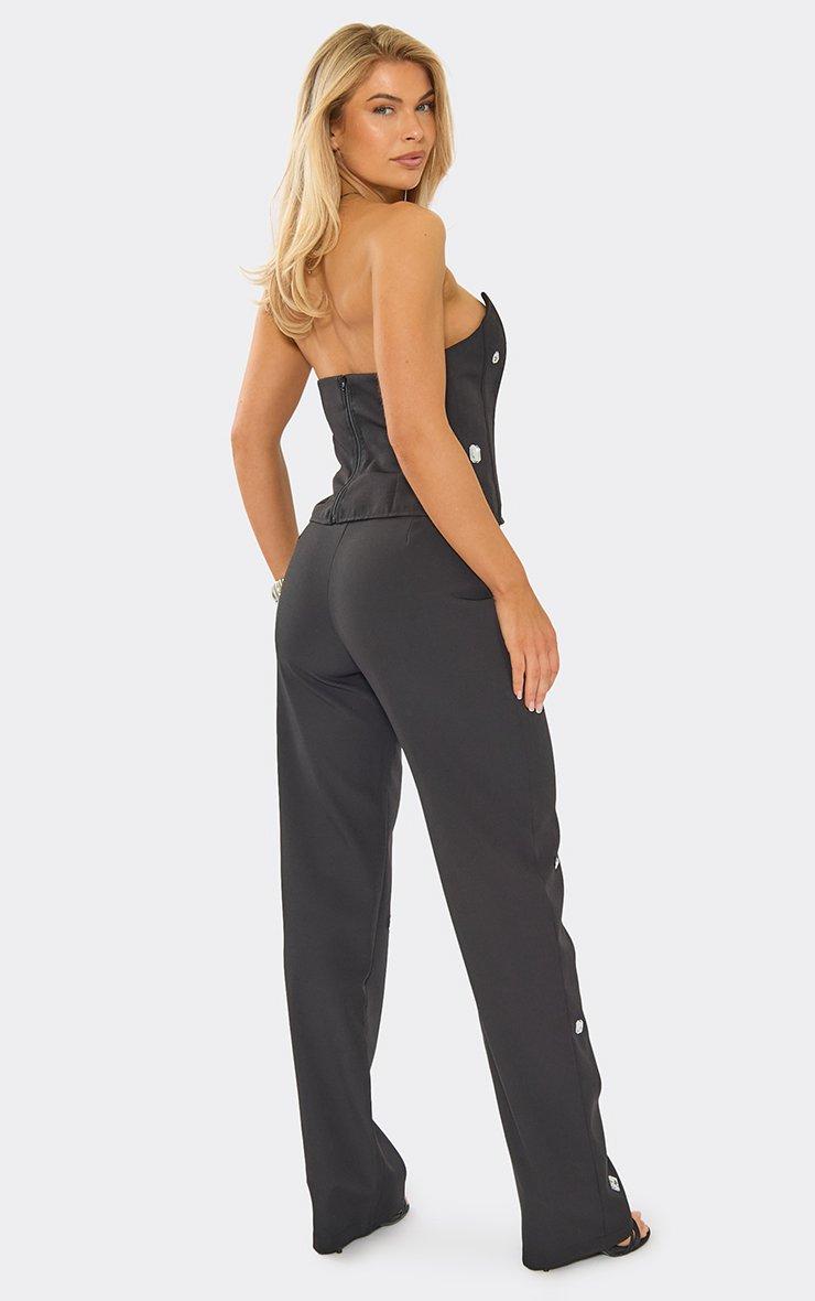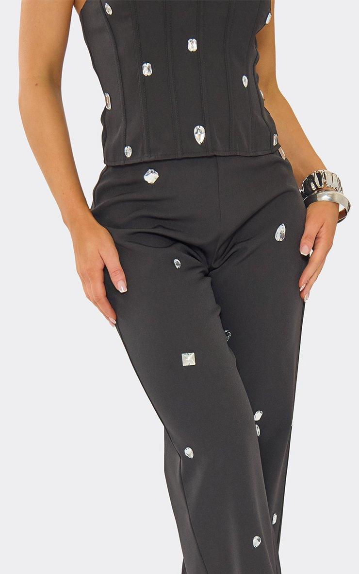 Mid Rise Embellished Straight Leg Trousers In Black
