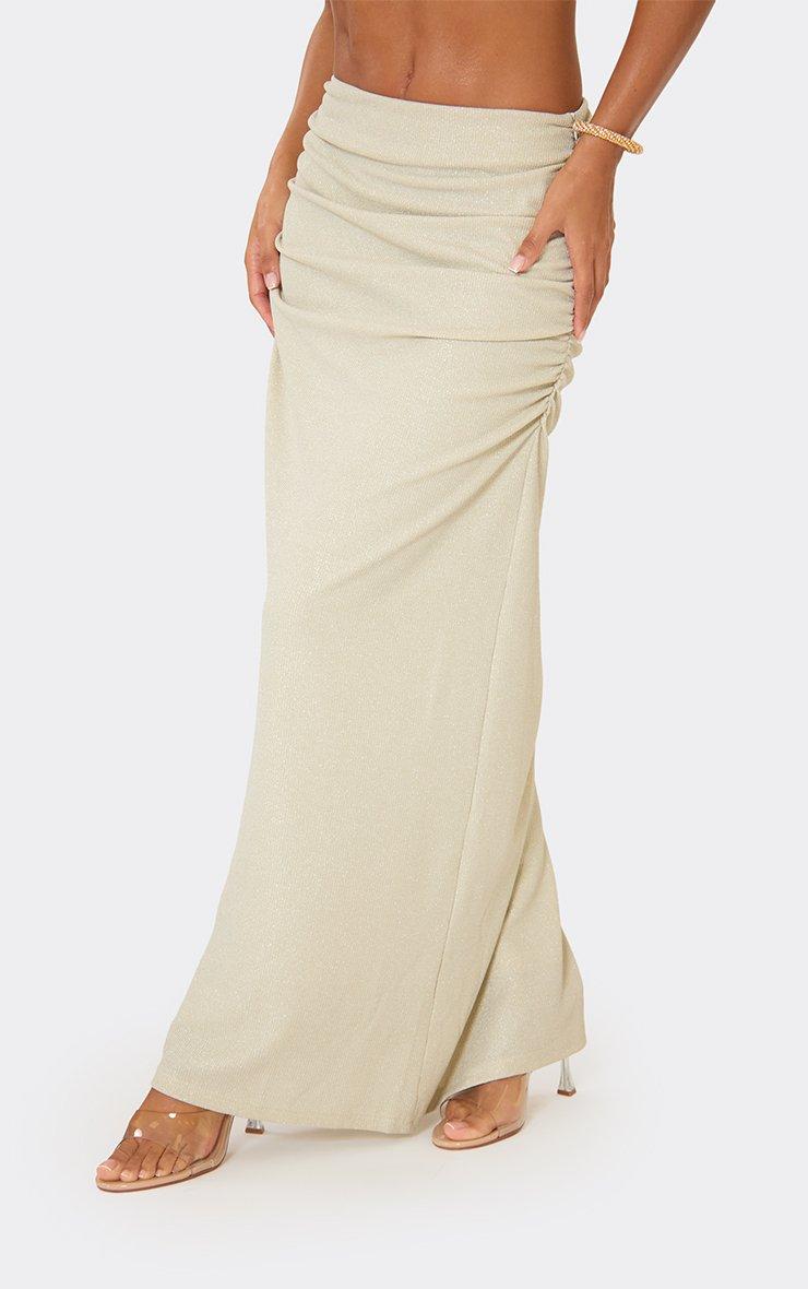 Low Waist Fitted Mini Skirt In Gold Sequin