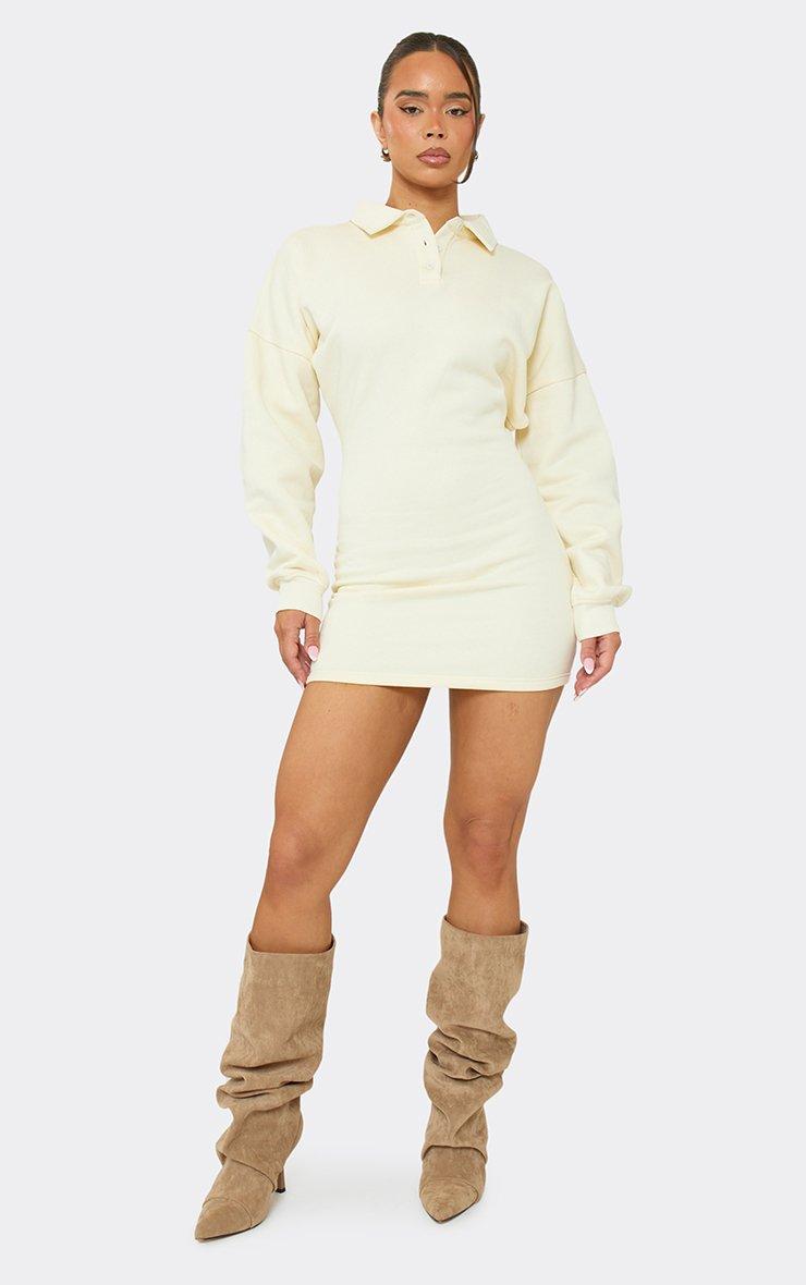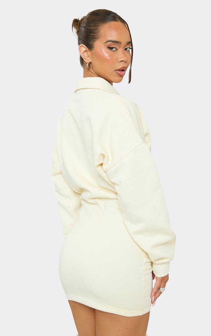 Long Balloon Sleeve Pleated Hem Detail Blazer Dress In Cream