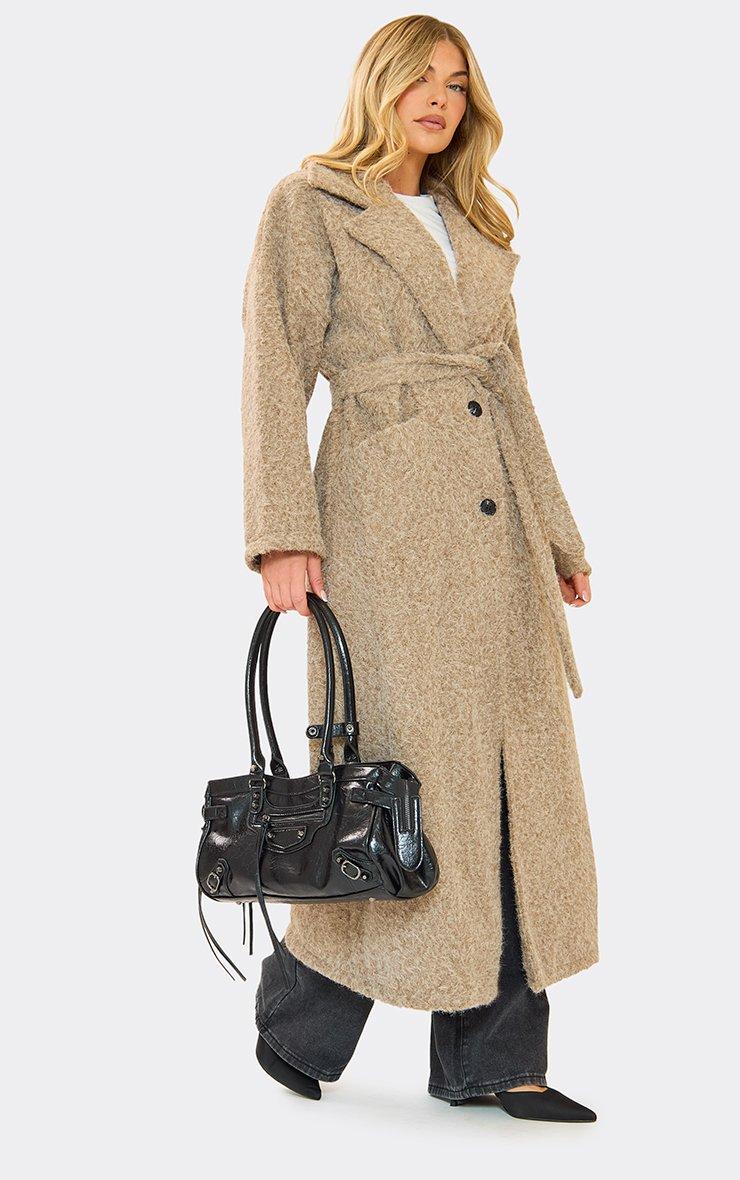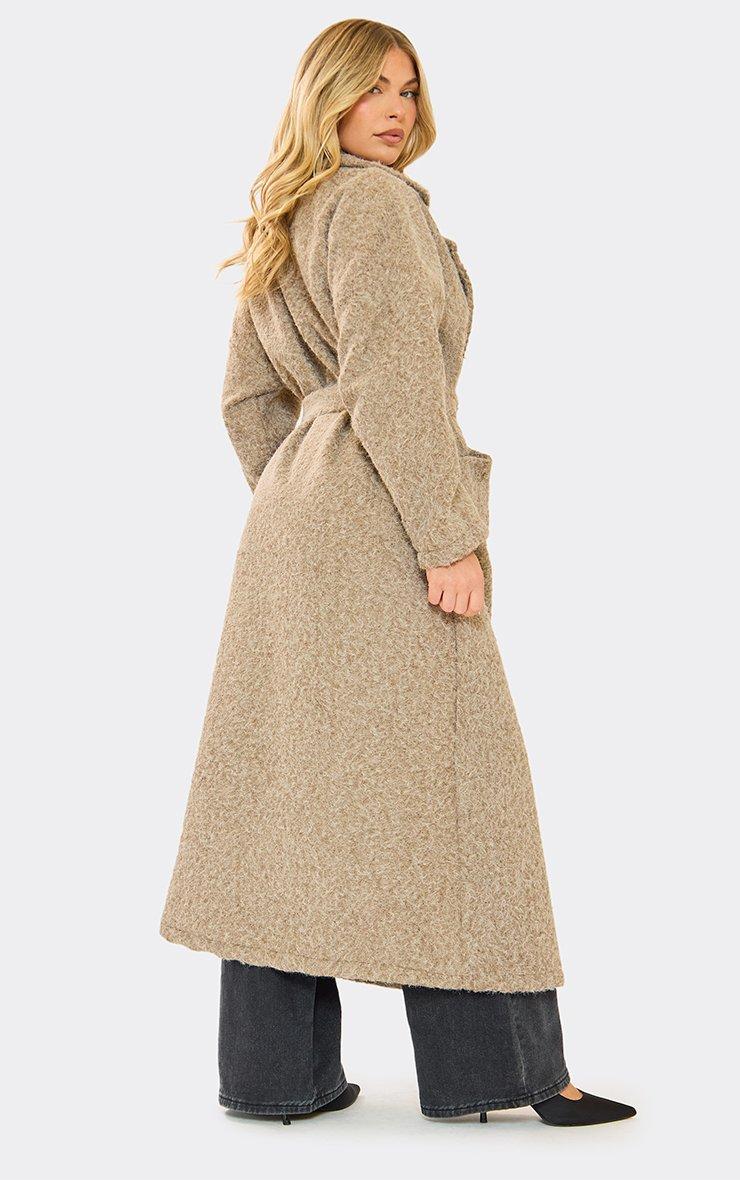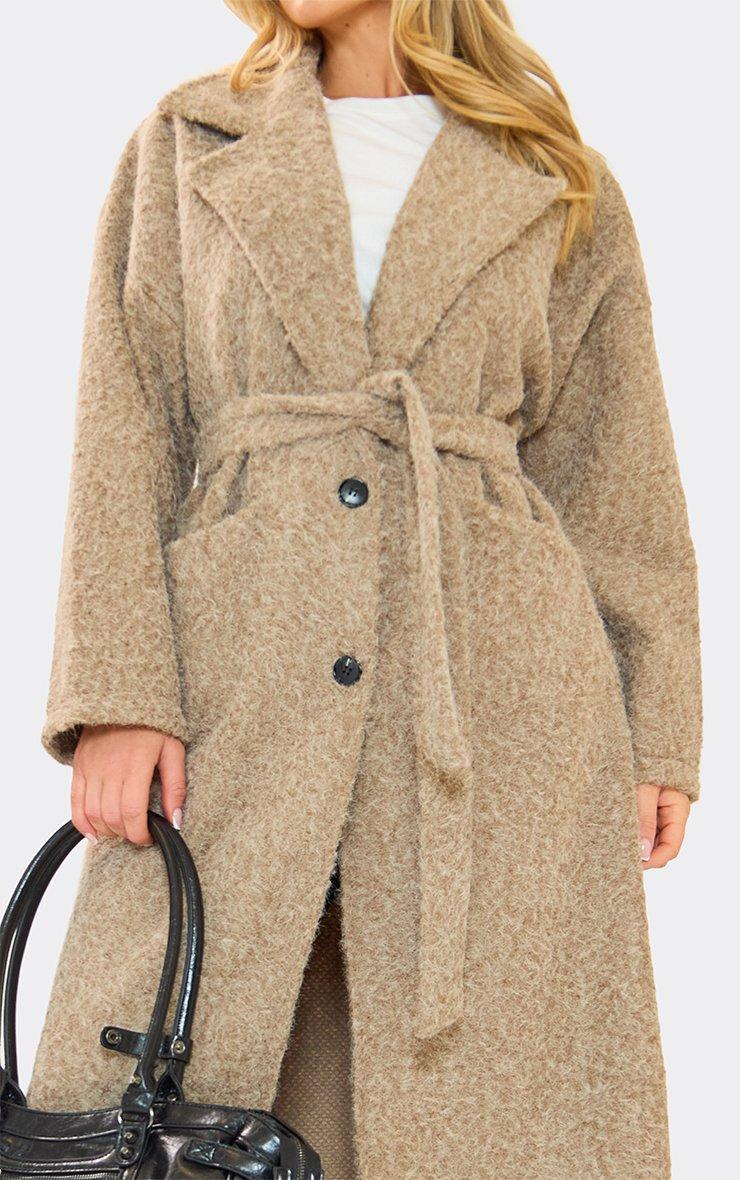 Belted Detail Longline Tailored Coat In Light Brown Wool