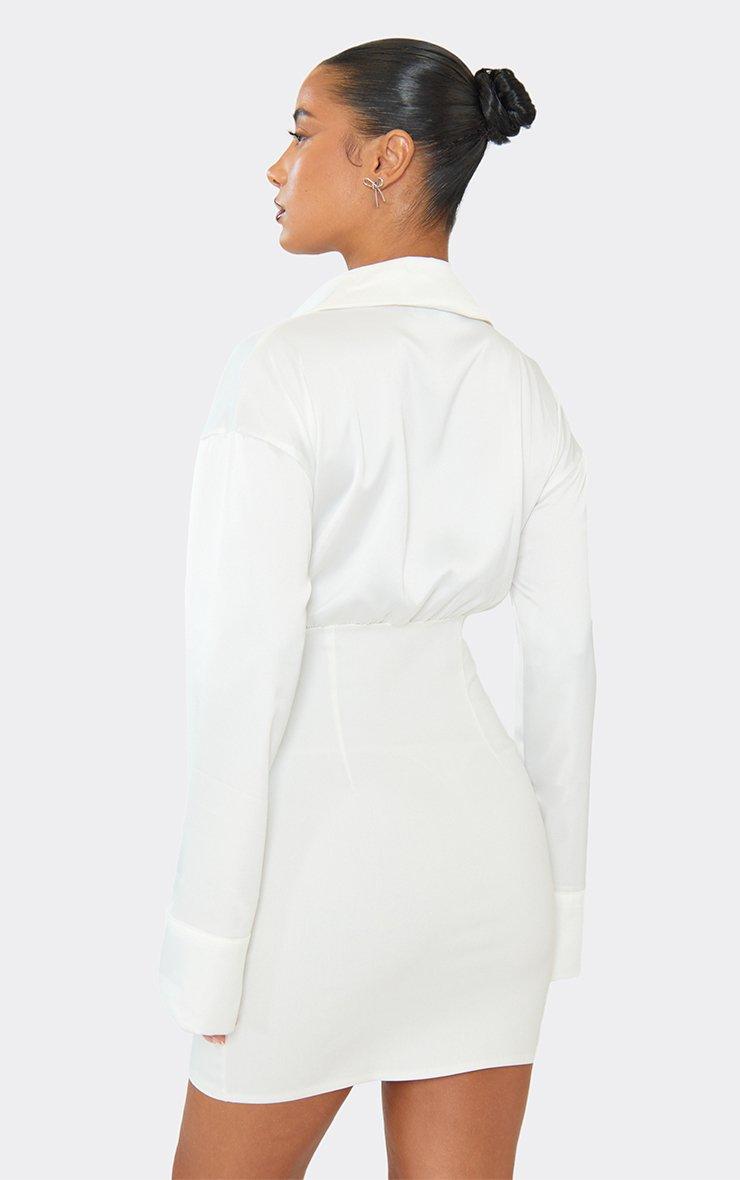 long sleeve button front cinched detail shirt dress in white