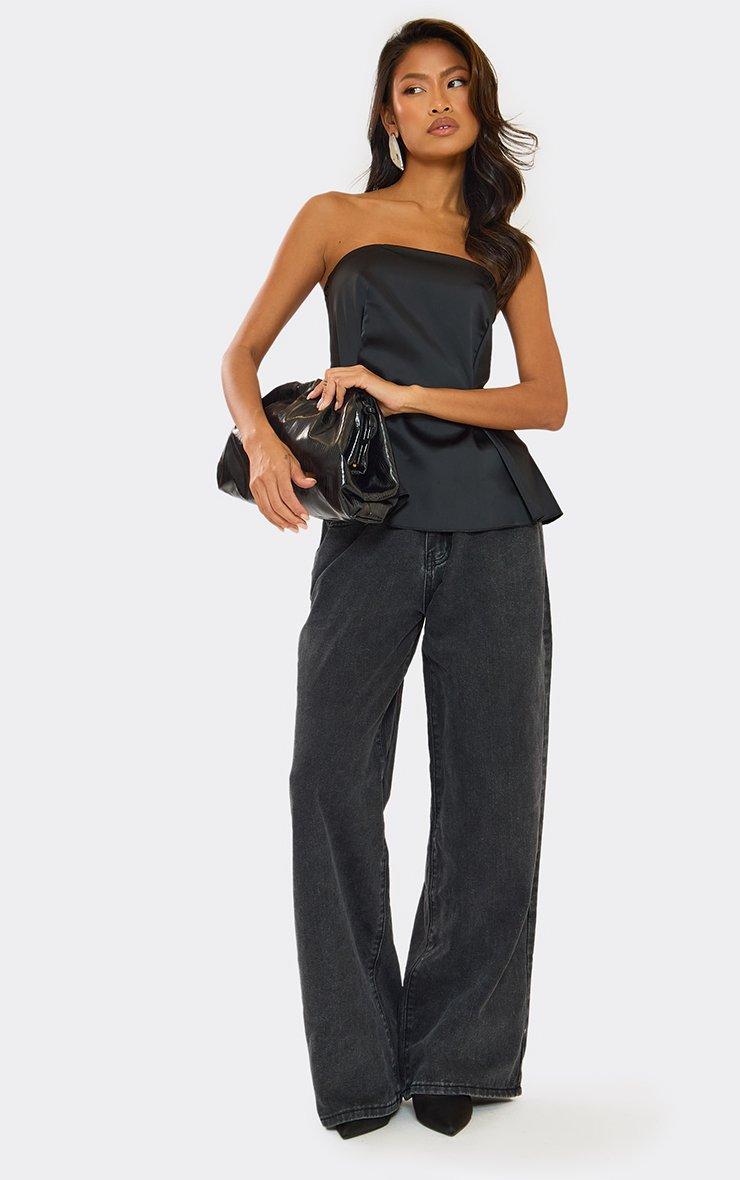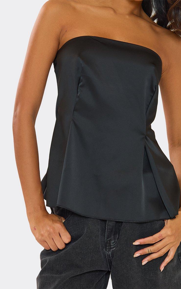 Bandeau Longline Top In Black Satin