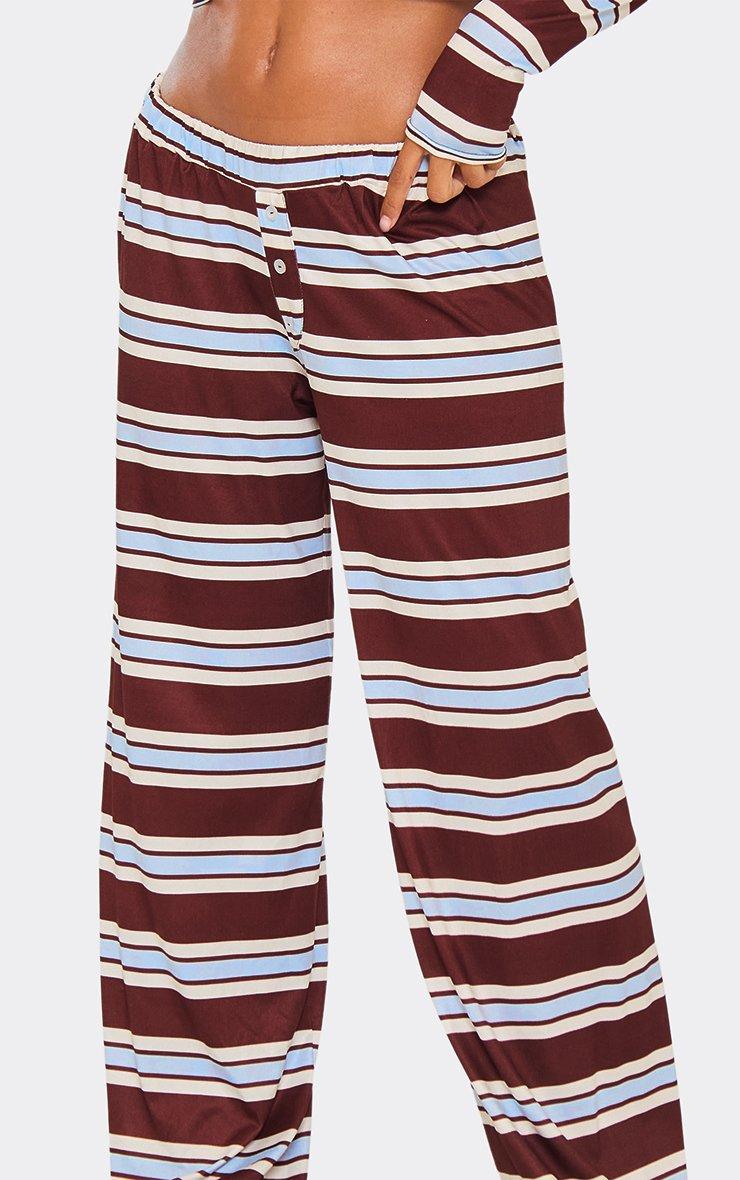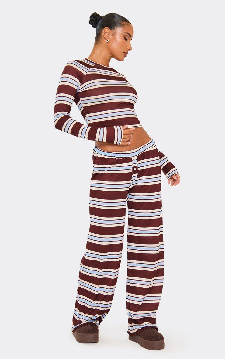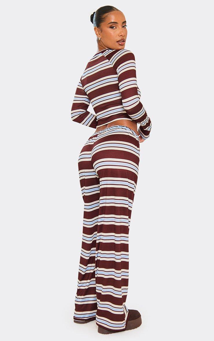 Low Rise Wide Leg Trousers In Chocolate Brown Ribbed