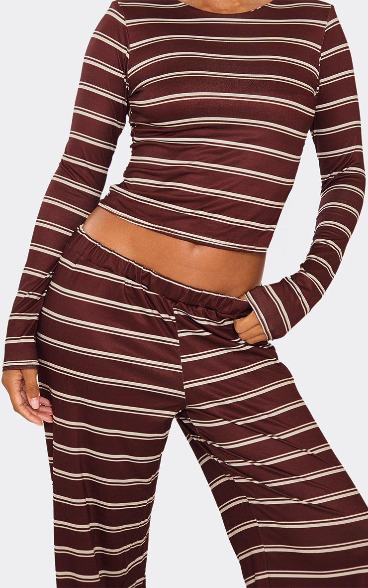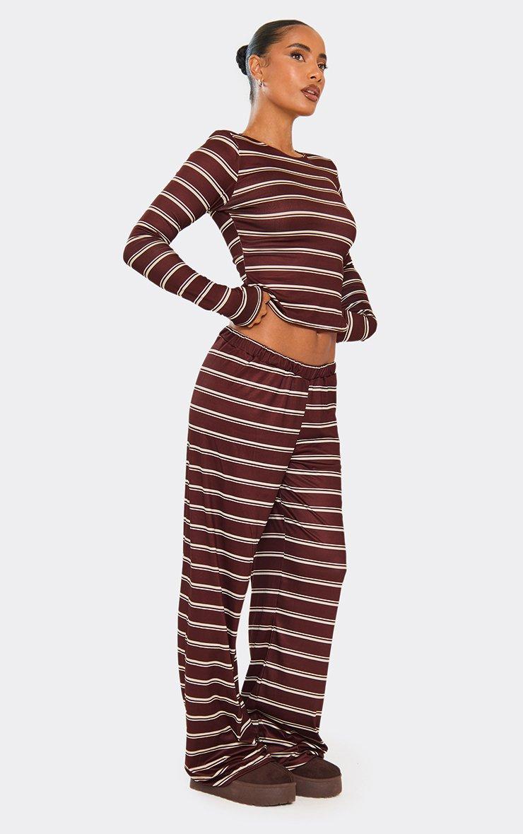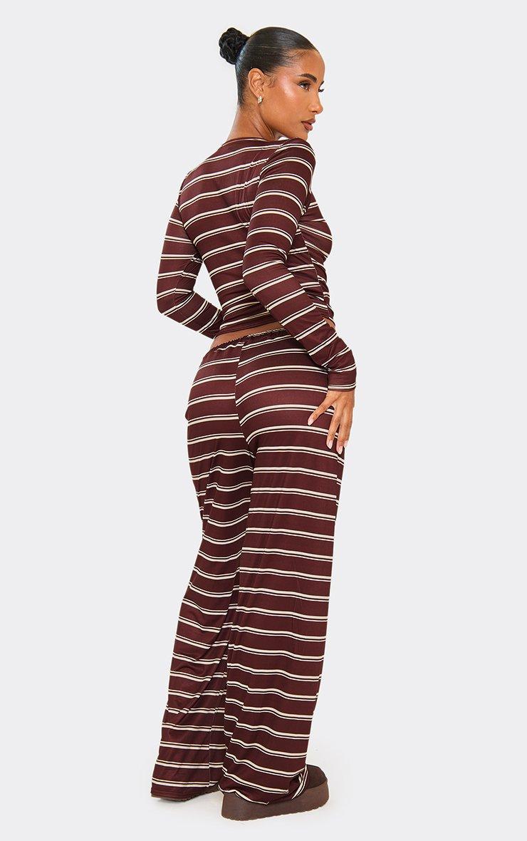 Mid Rise Wide Leg Trousers In Brown Stripe