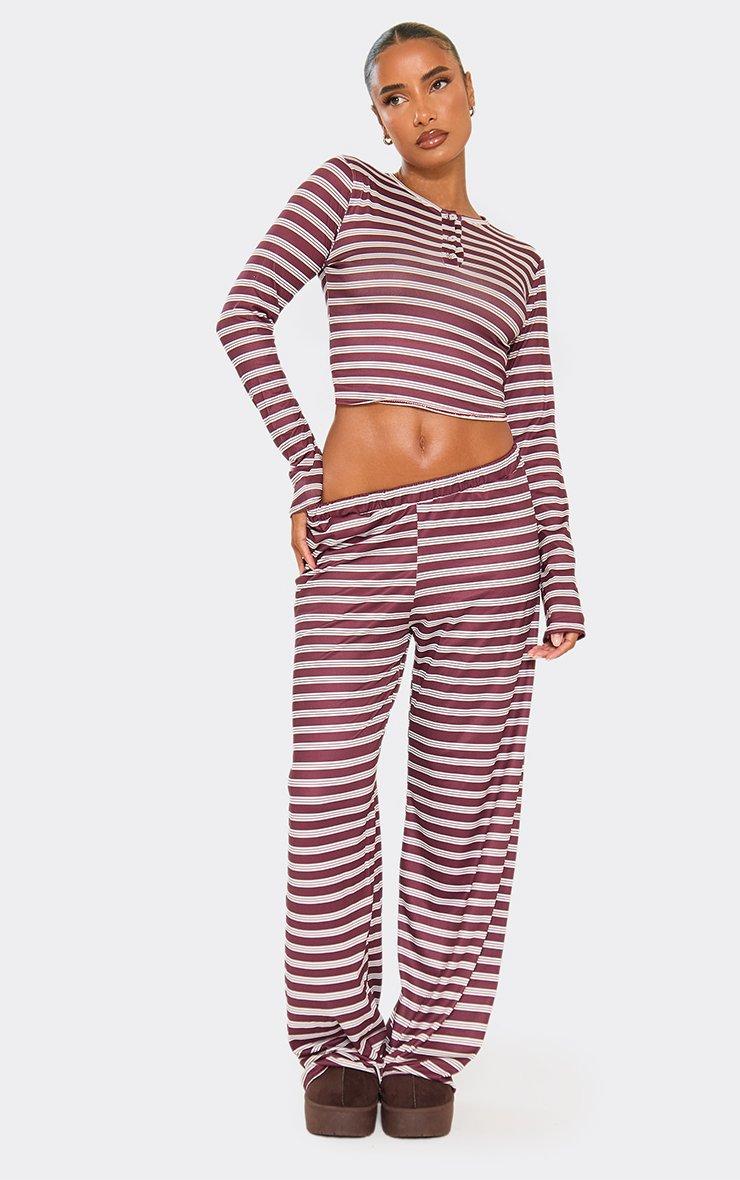 Elasticated Waist Wide Leg Joggers In Chocolate Brown