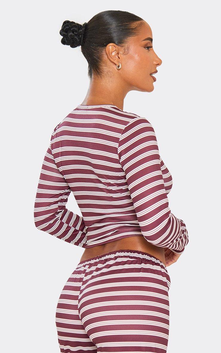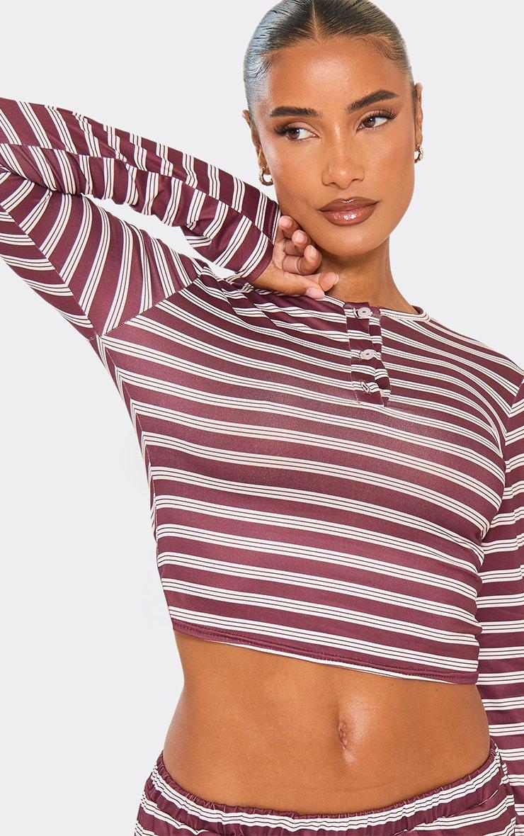 Long Sleeve Ruched Detail Split Front Crop Top In Burgundy Slinky