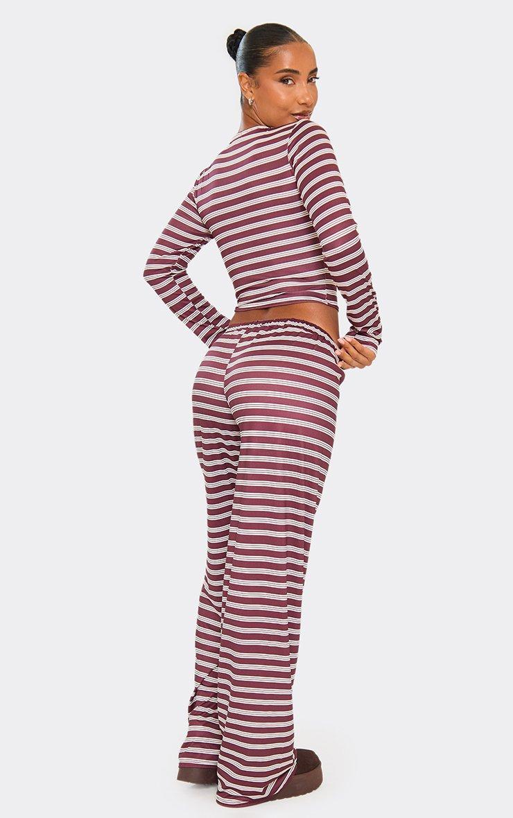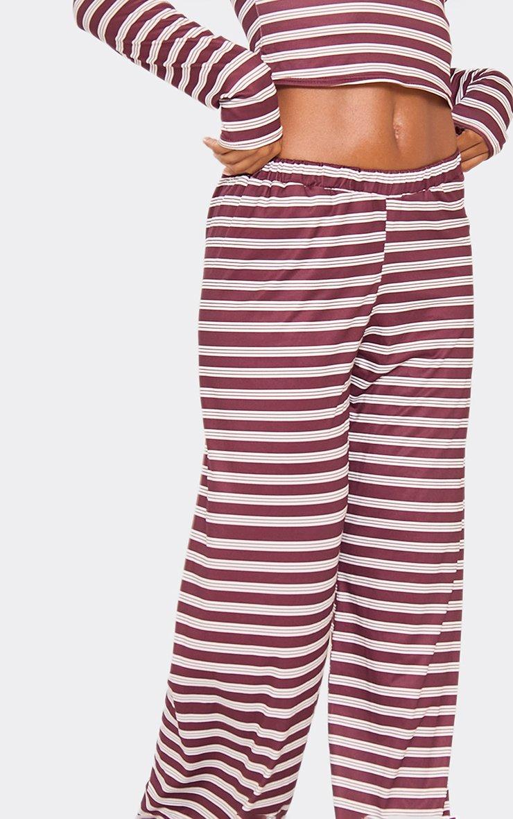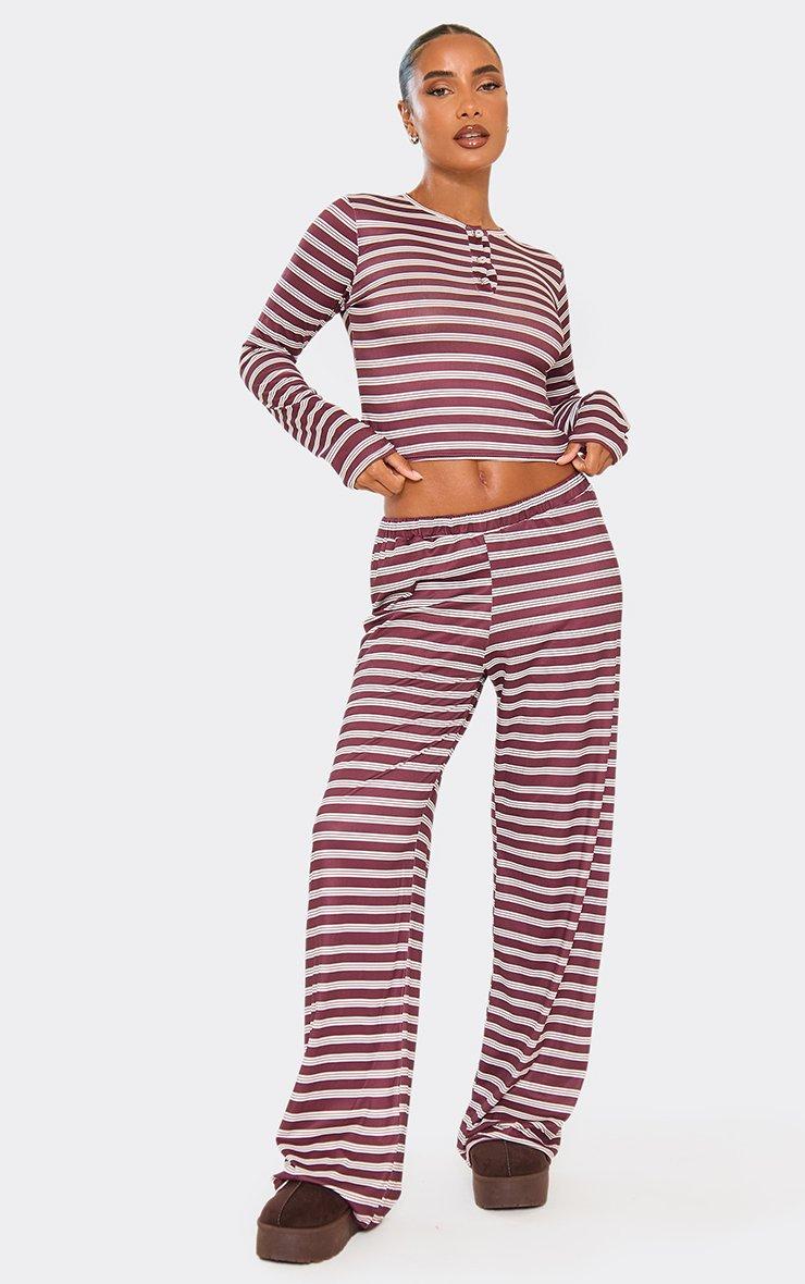 Mid Rise Wide Leg Trousers In Burgundy Stripe