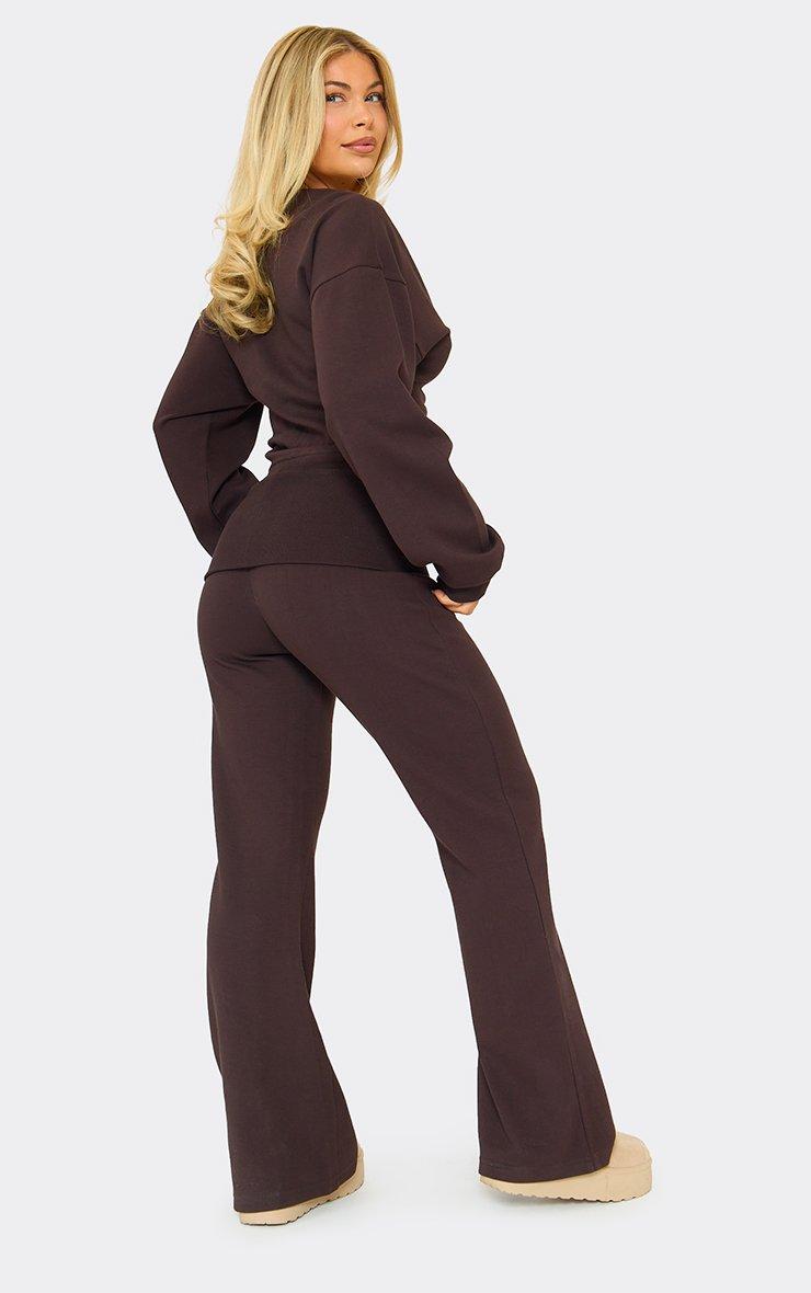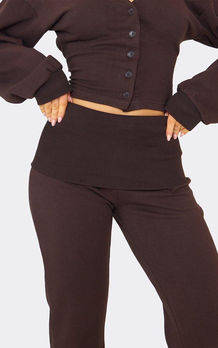 Low Rise Foldover Flared Leg Joggers In Chocolate Brown