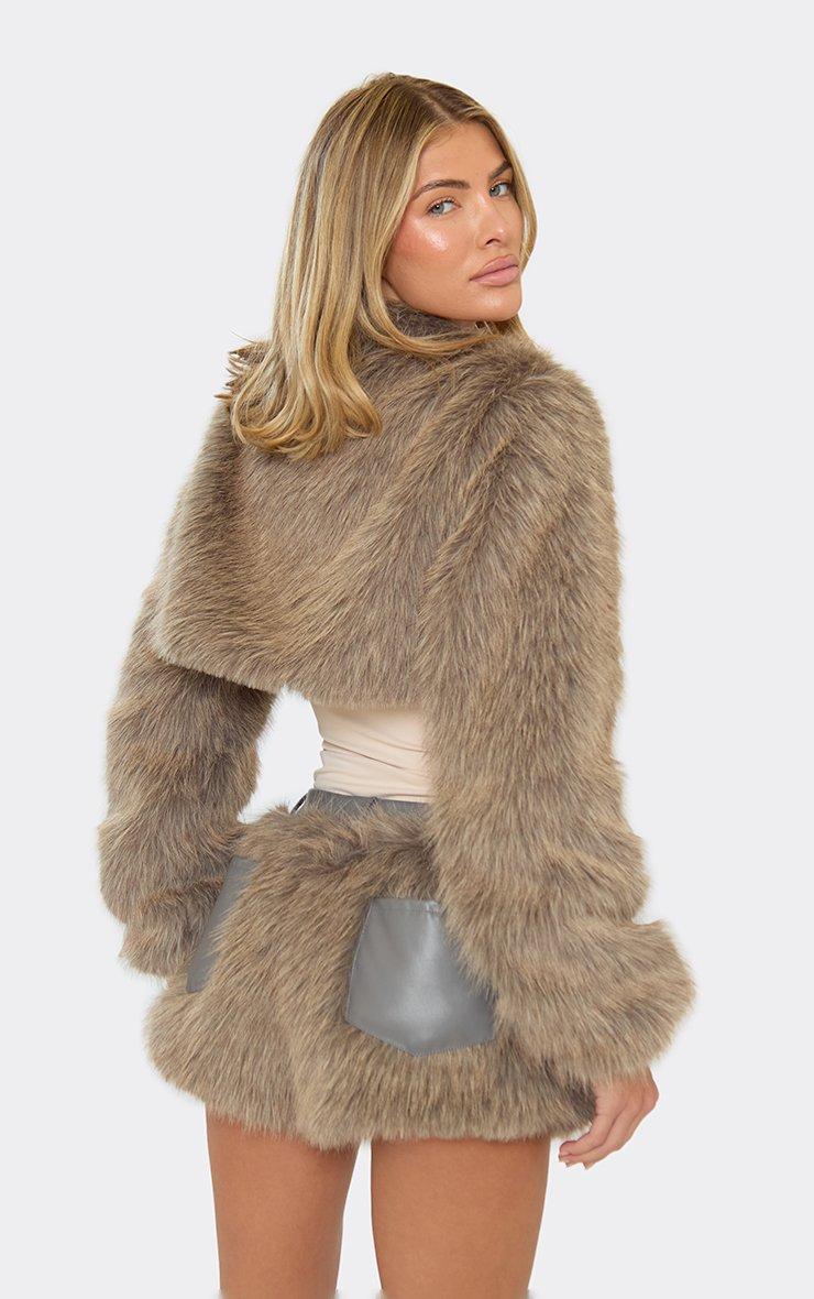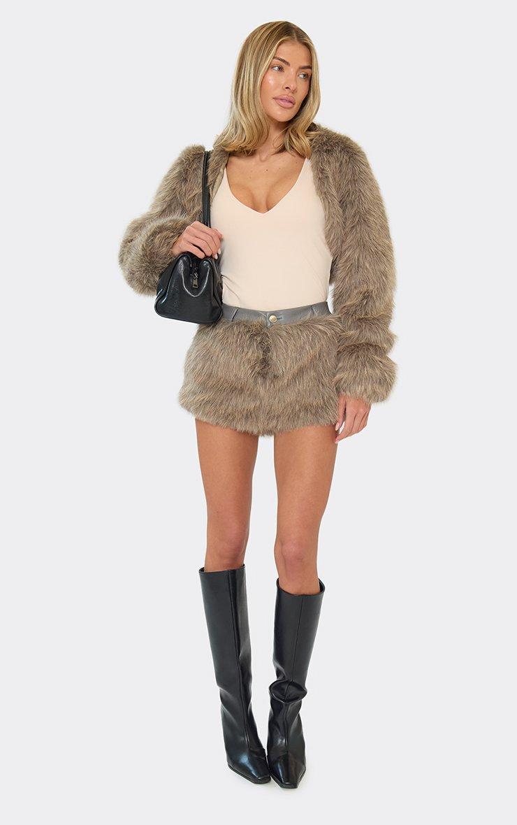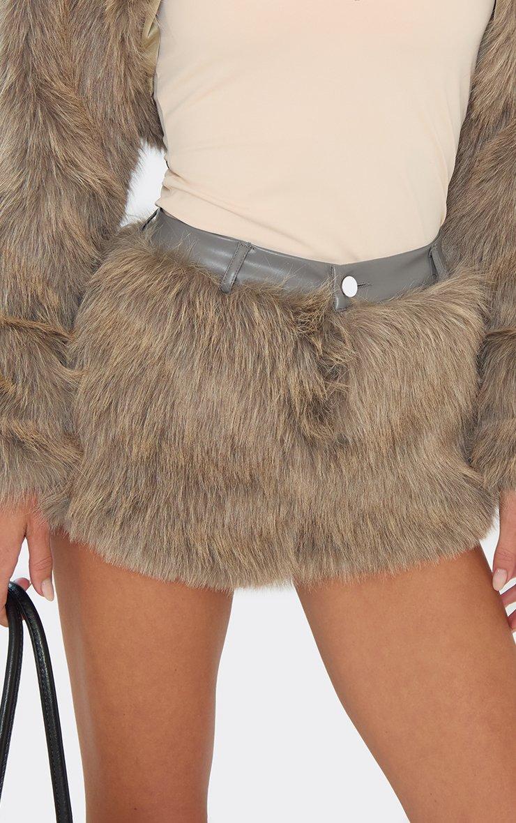 Mid Rise Shorts In Grey Faux Fur