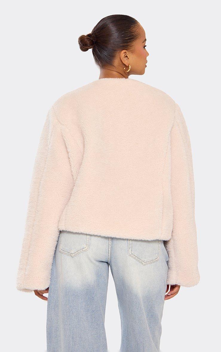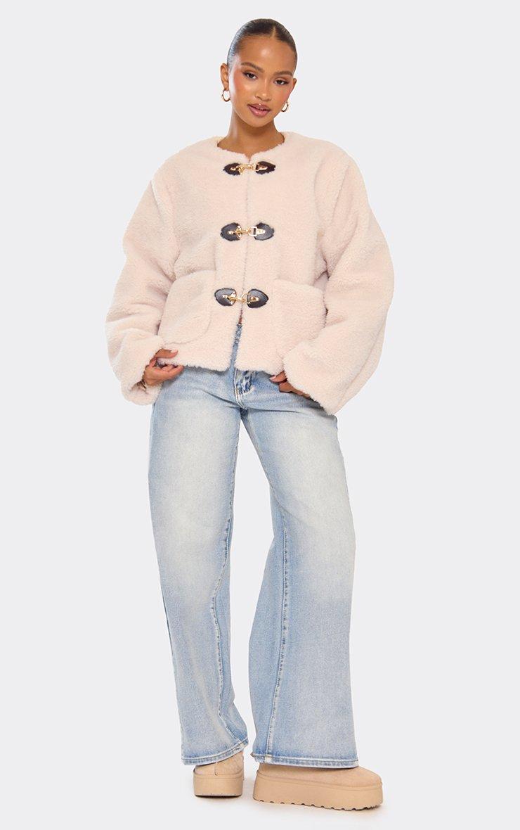 Long Sleeve Buckle Front Detail Jacket In Cream Borg