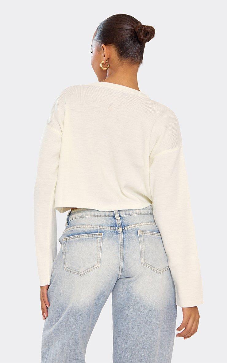 Long Sleeve Bardot Jumper In Cream Compact Knit