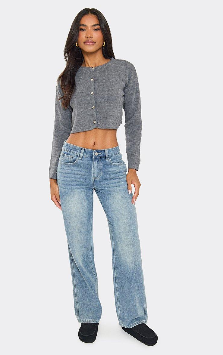 Long Sleeve Button Down Cardigan In Grey Knit