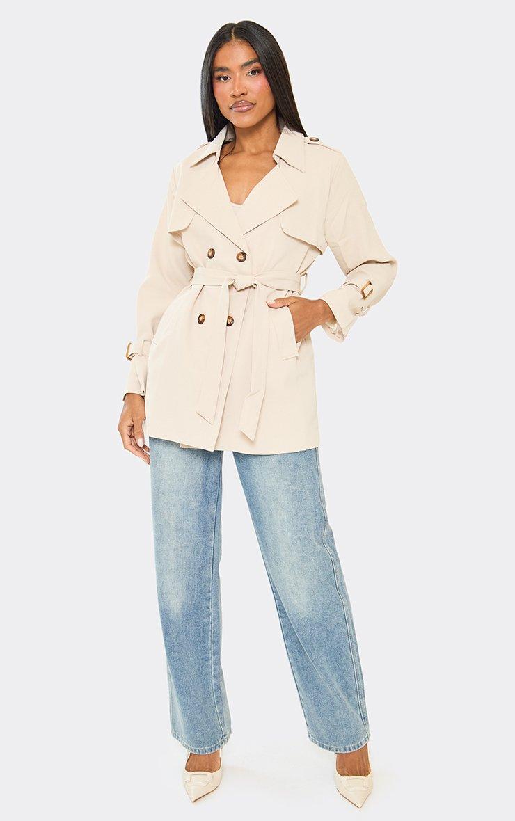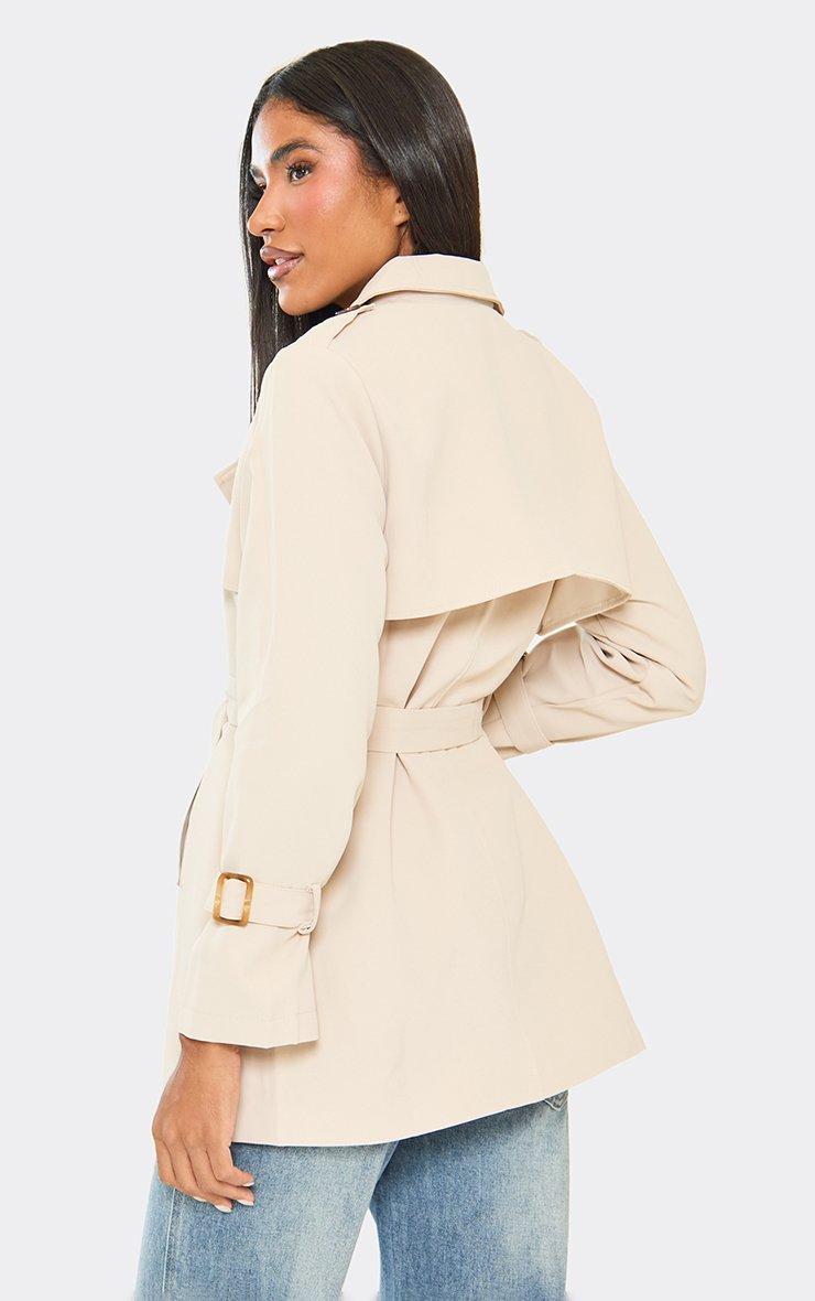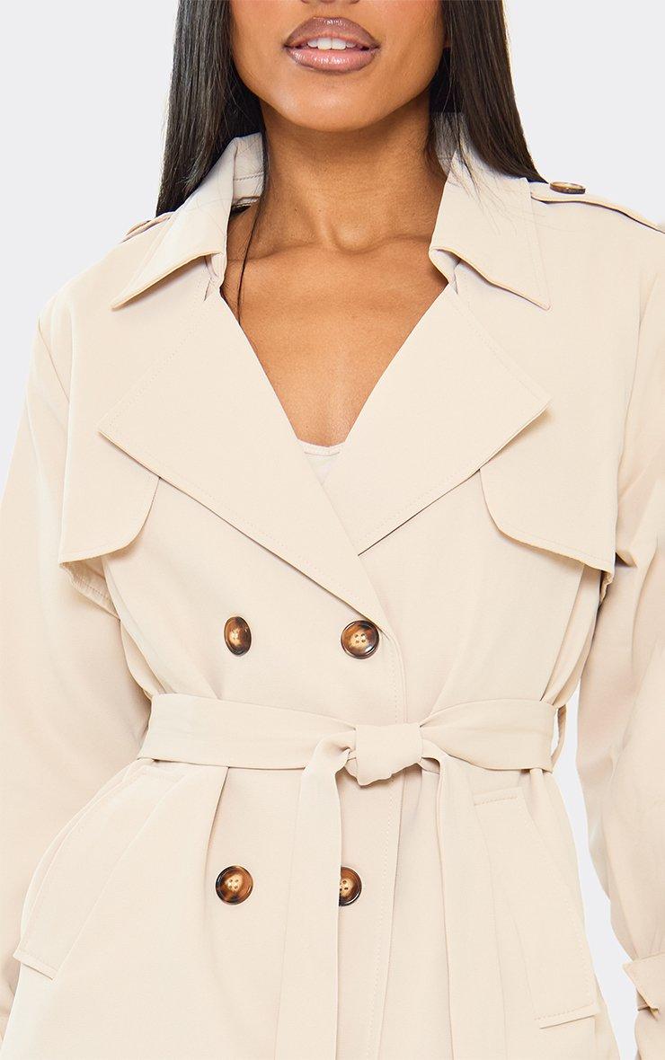 Long Sleeve Belt Detail Cropped Trench Coat In Beige
