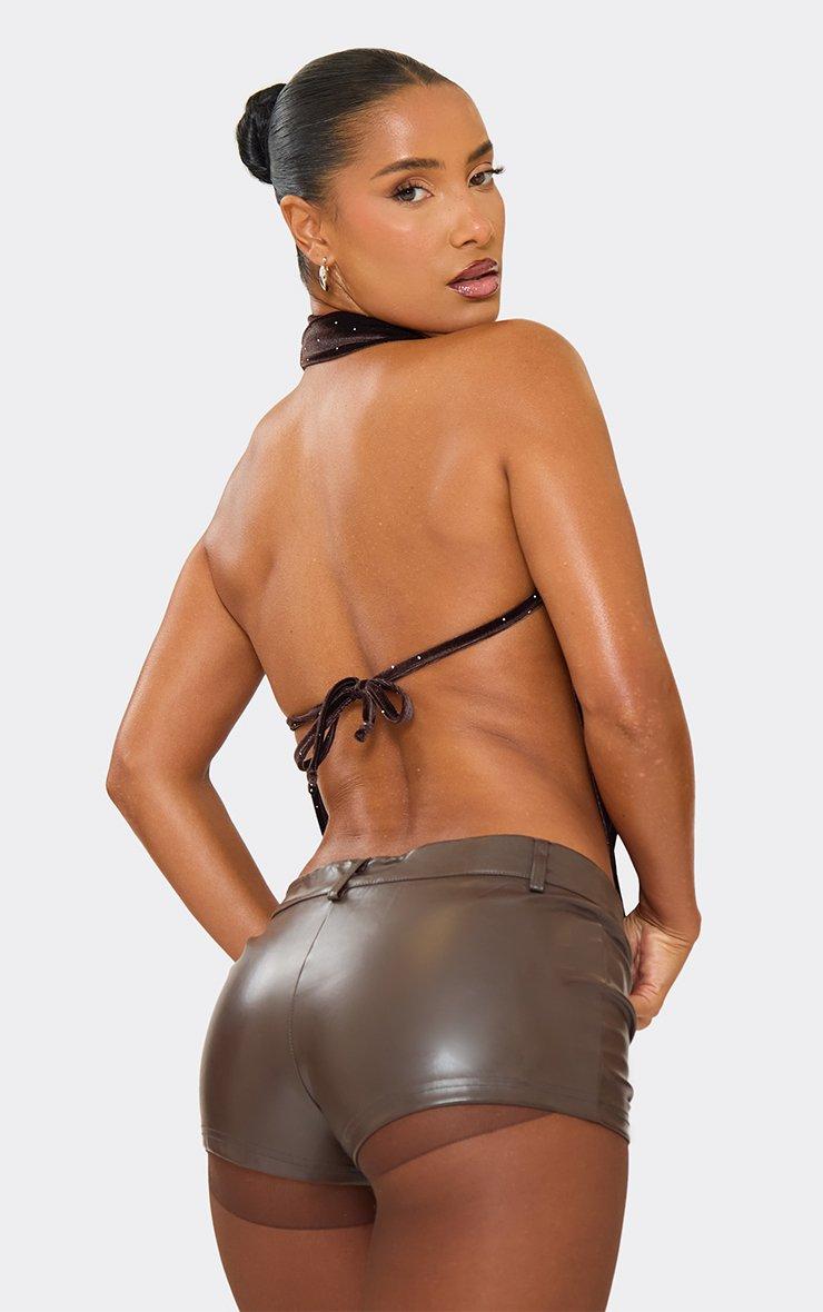 Cowl Halterneck Diamante Tie Back Detail Top In Chocolate Brown Slinky
