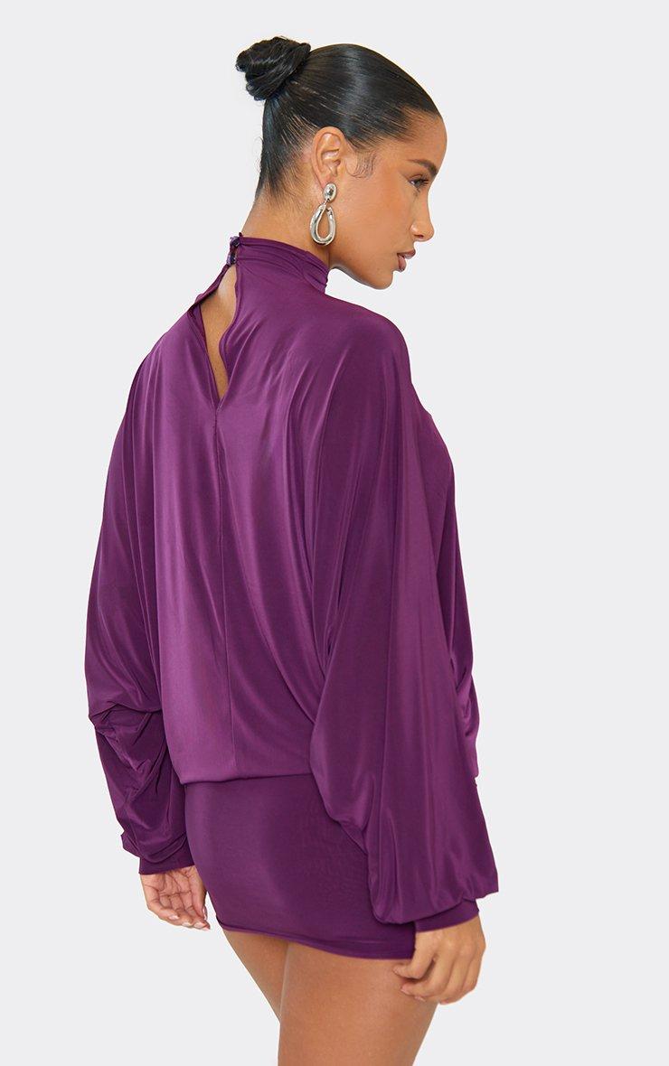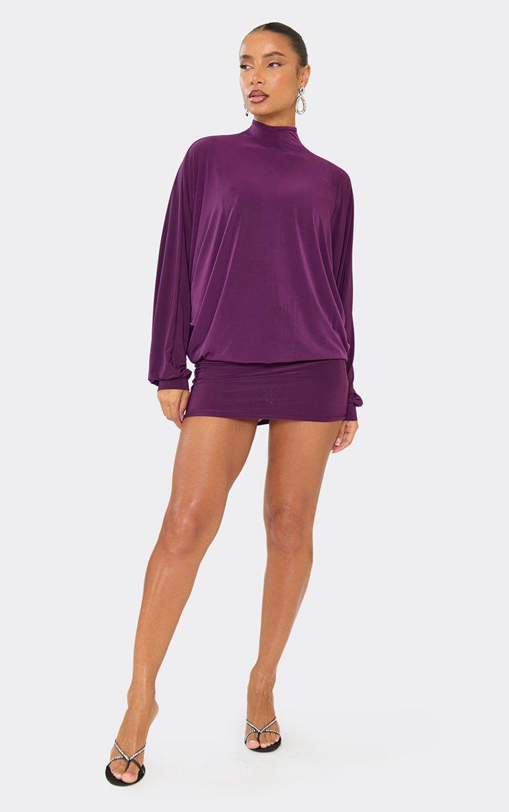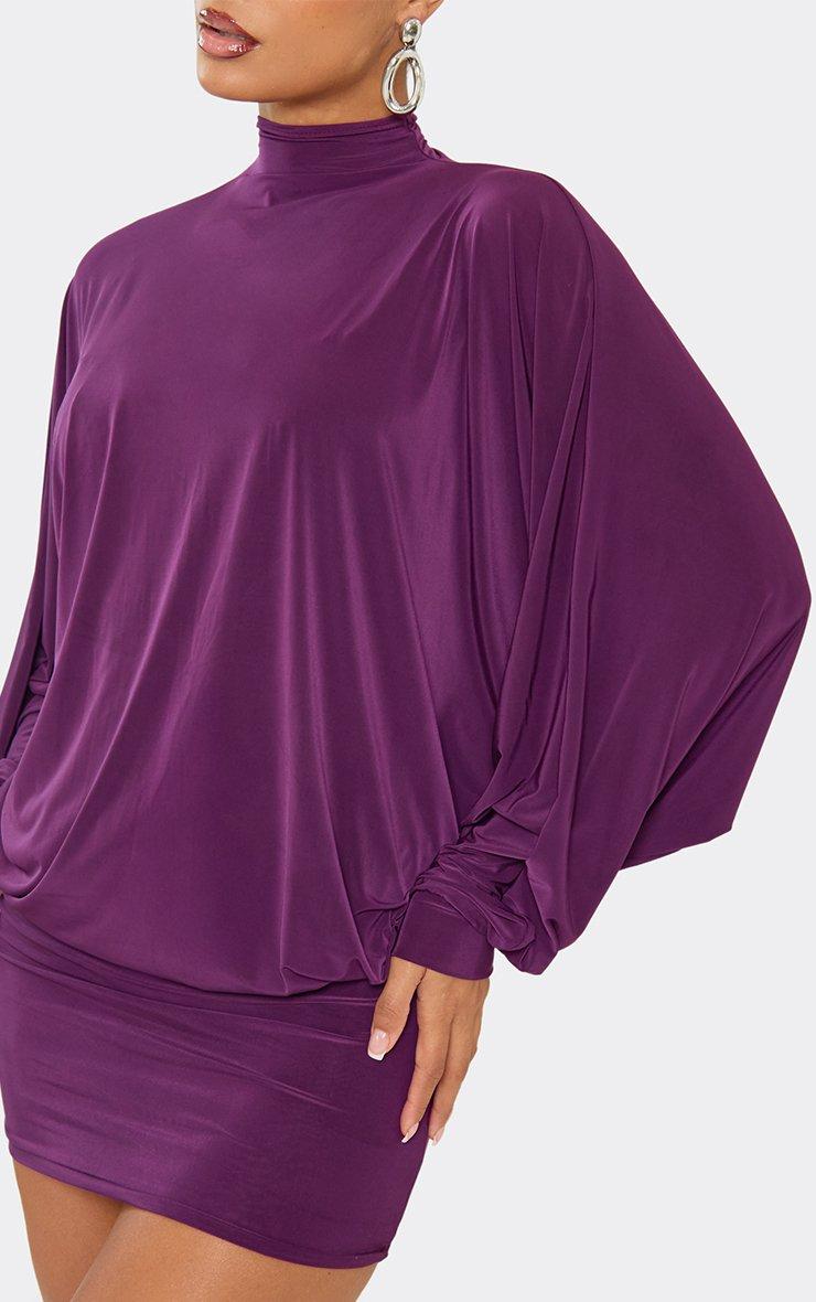 High Neck Bat Wing Mini Dress In Purple