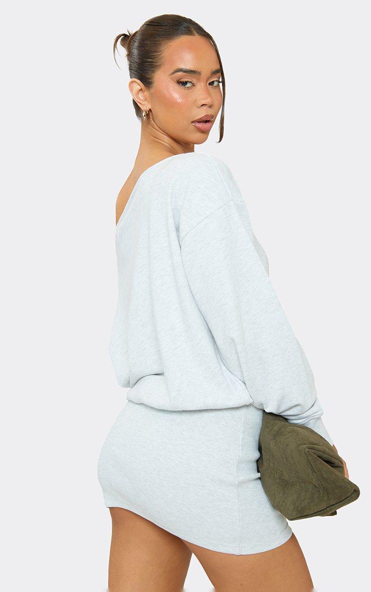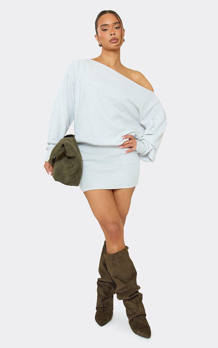 off the shoulder slouchy sweat dress in grey marl