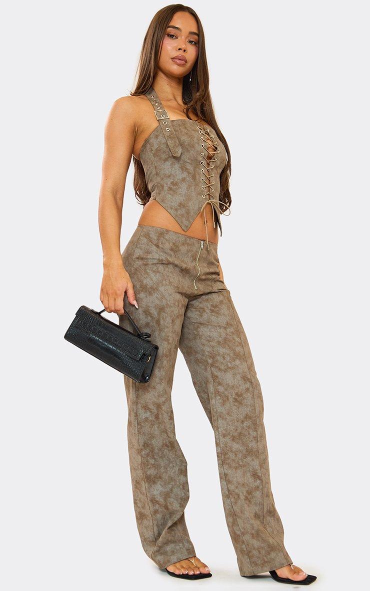 Low Rise Straight Leg Trousers In Grey Acid Print