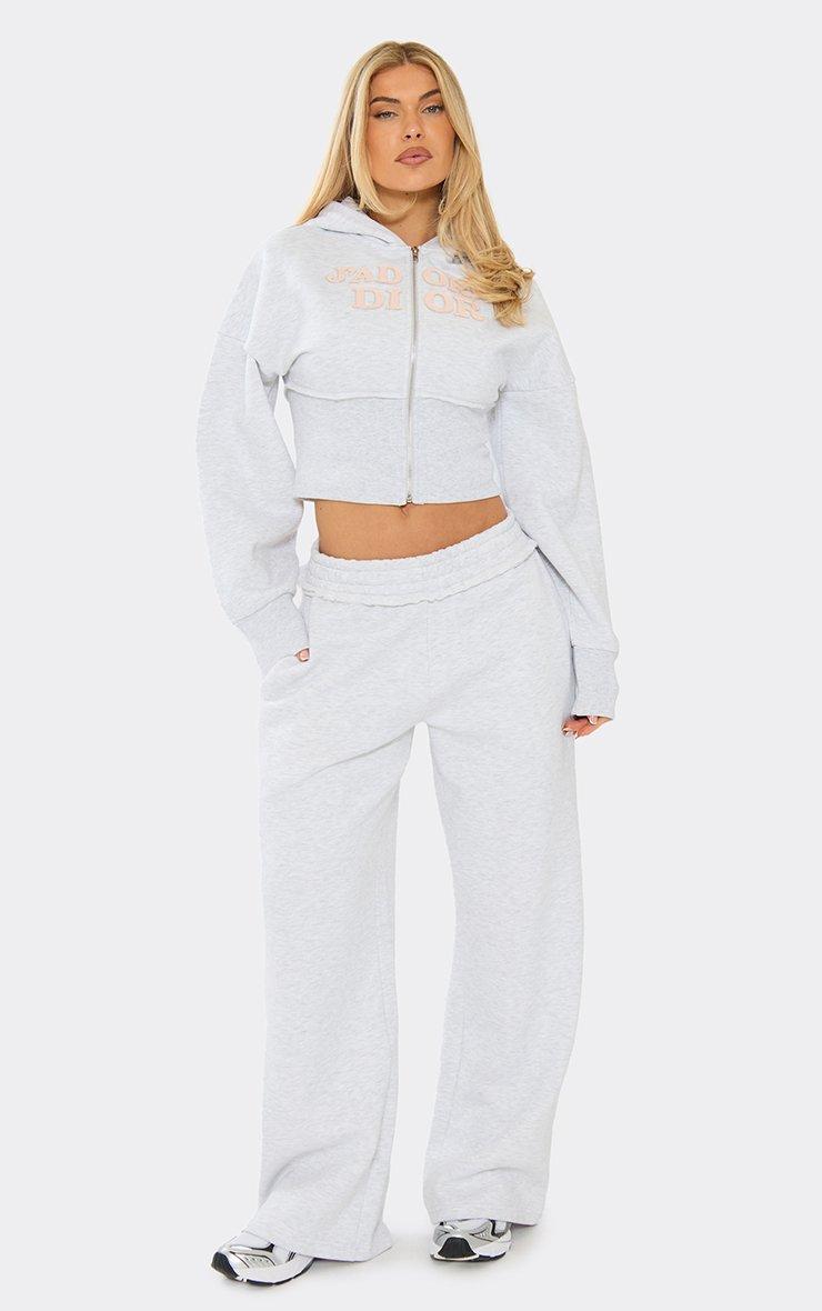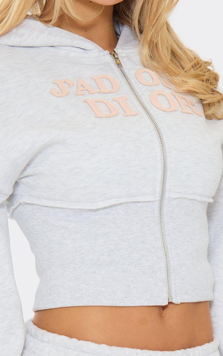 balloon sleeve cinched waist logo graphic zip up hoodie in grey