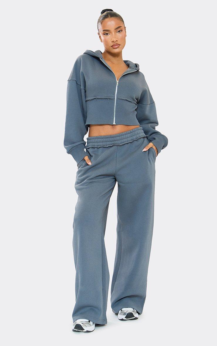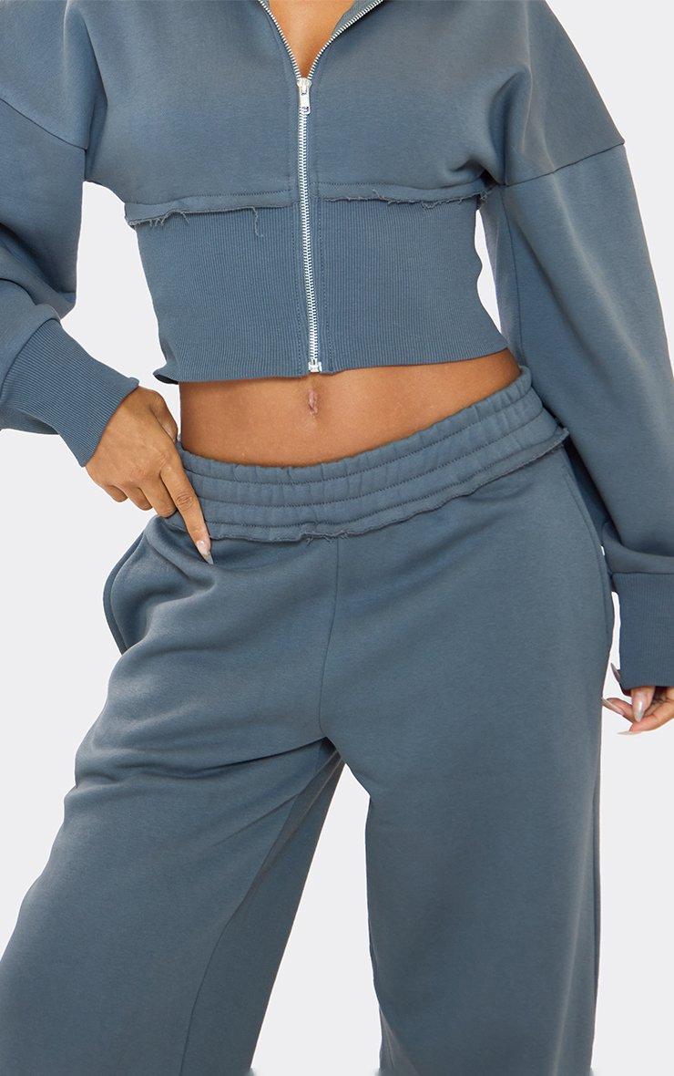 Low Rise Distressed Detail Wide Leg Joggers In Blue