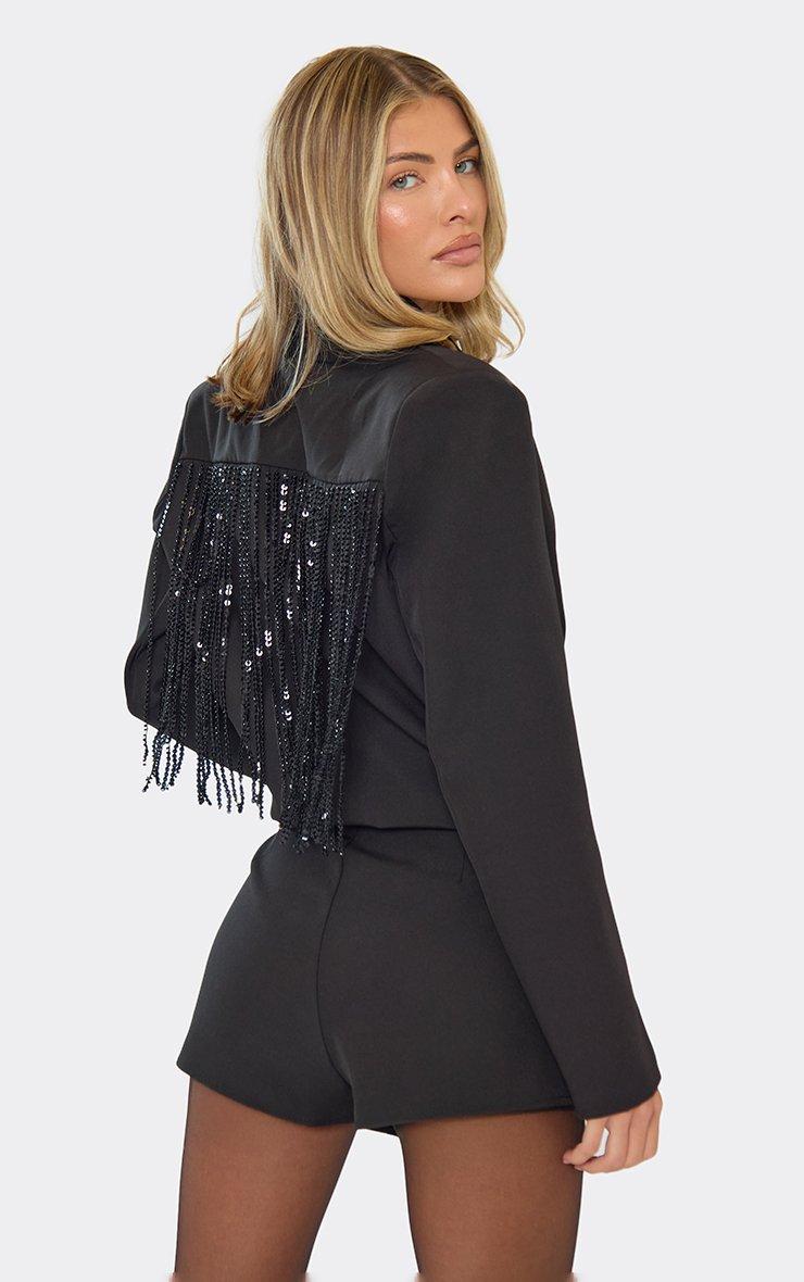 Low Rise Beaded Tassel Detail Skort In Black