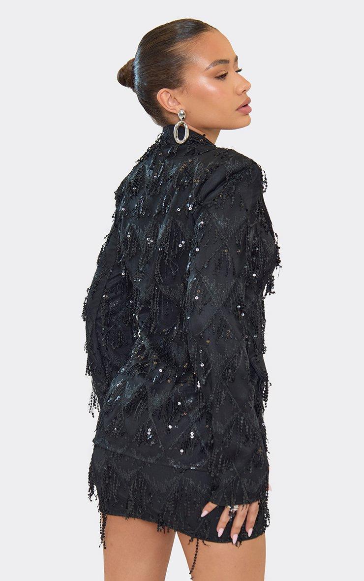 Mid Waist Tassel Sequin Detail Mini Skirt In Black