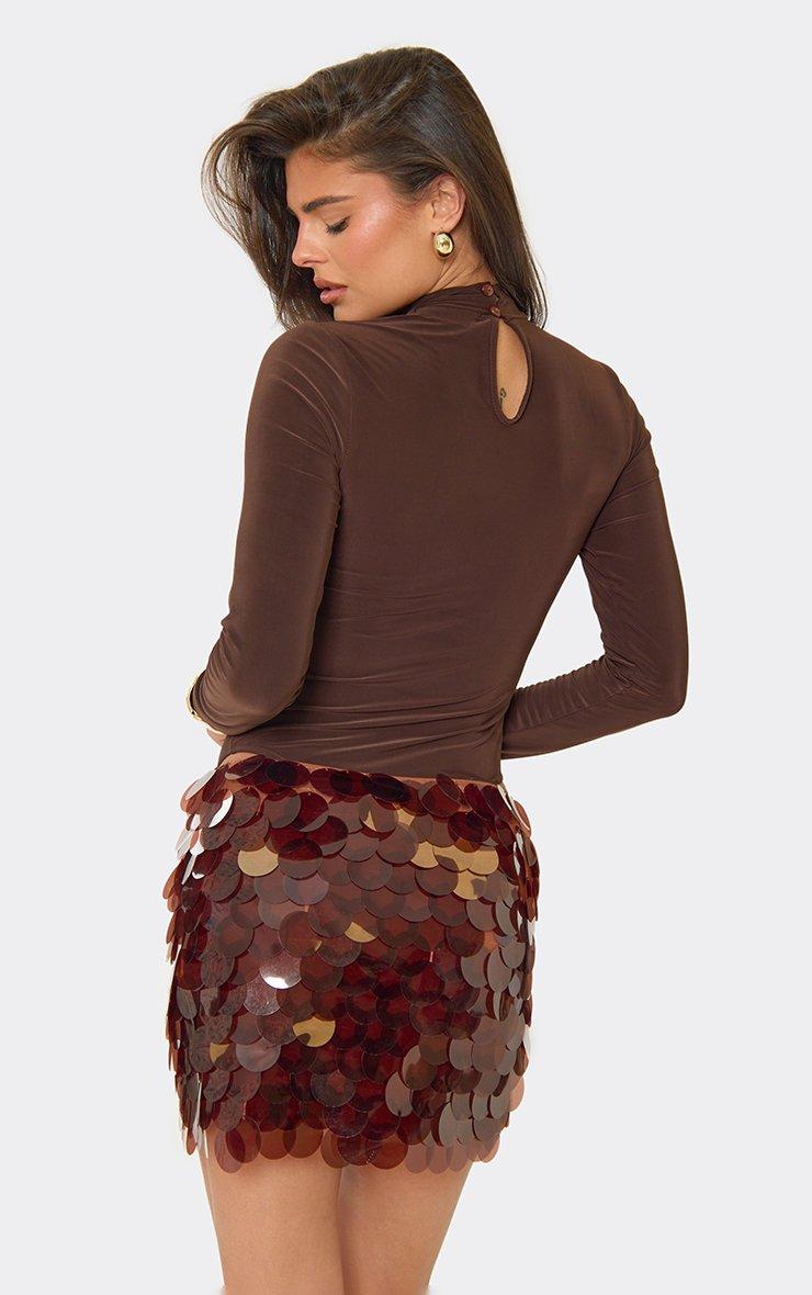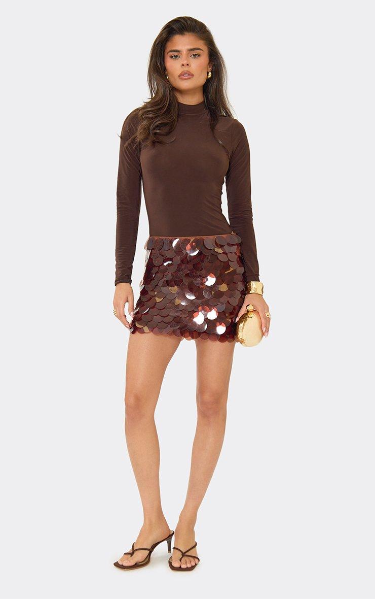 Mid Rise Mini Skirt In Brown Disc Sequin