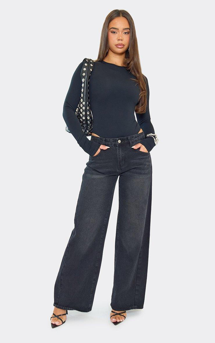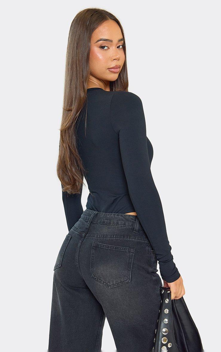 Long Sleeve Cowl Back Detail Top In Black Slinky