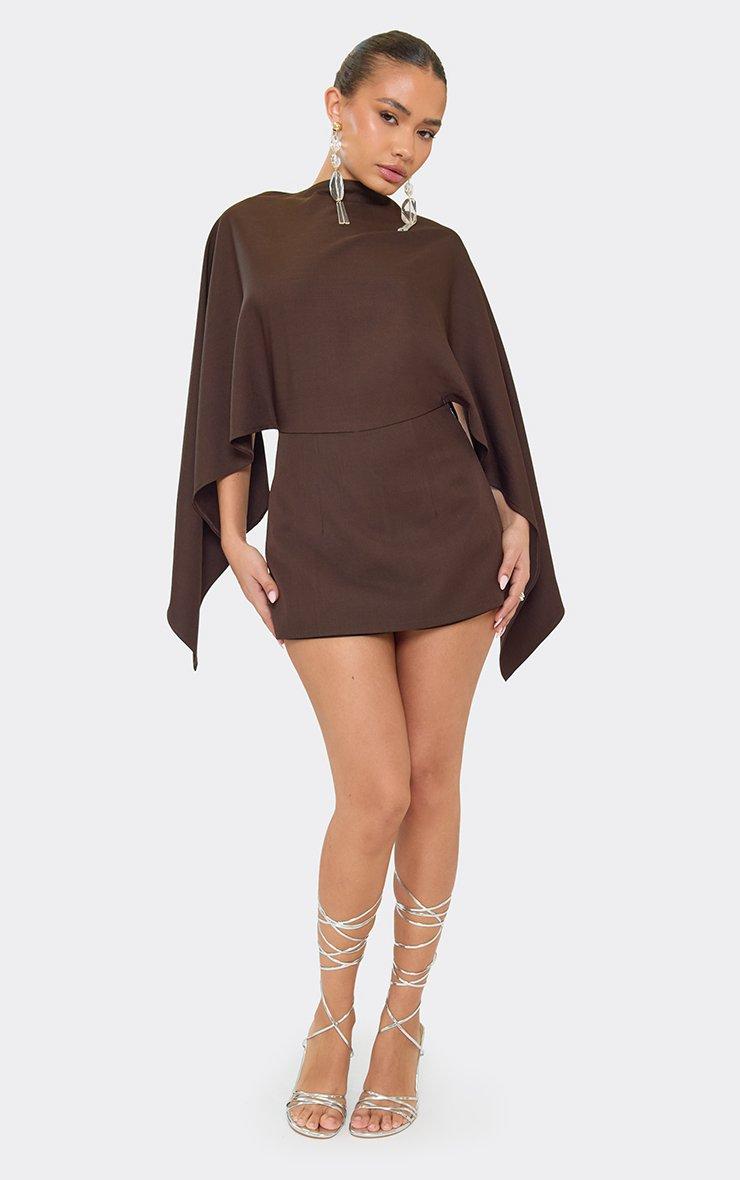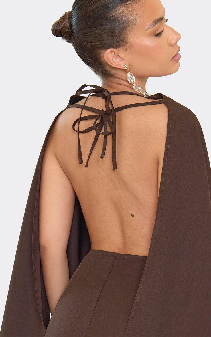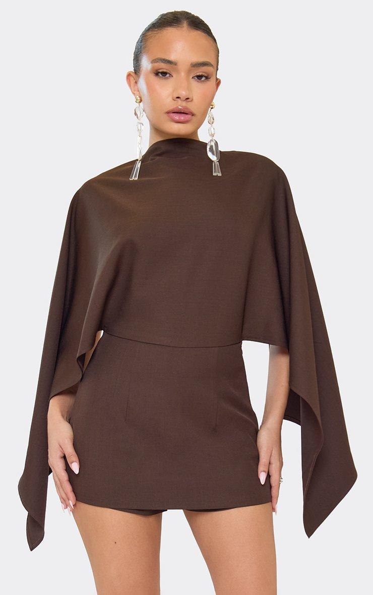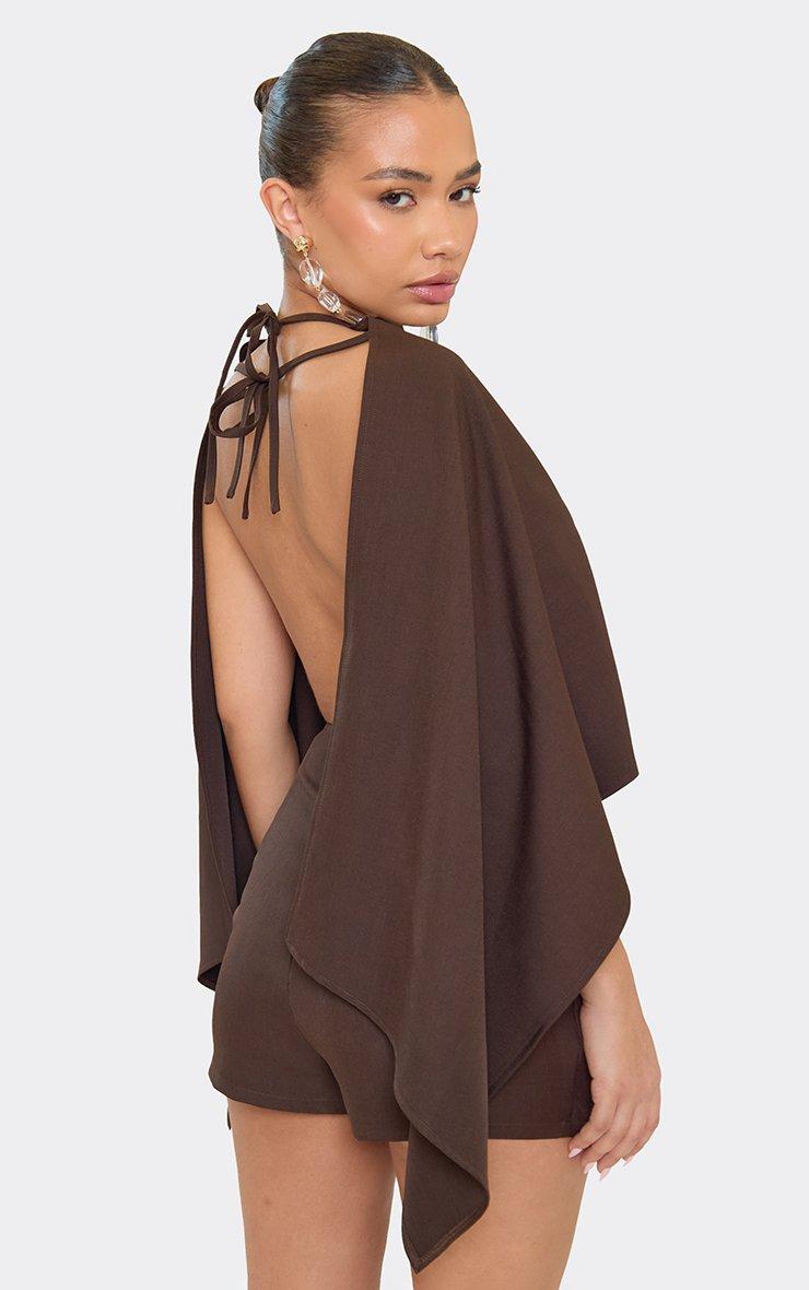 Cape Open Back Playsuit In Chocolate Brown Woven