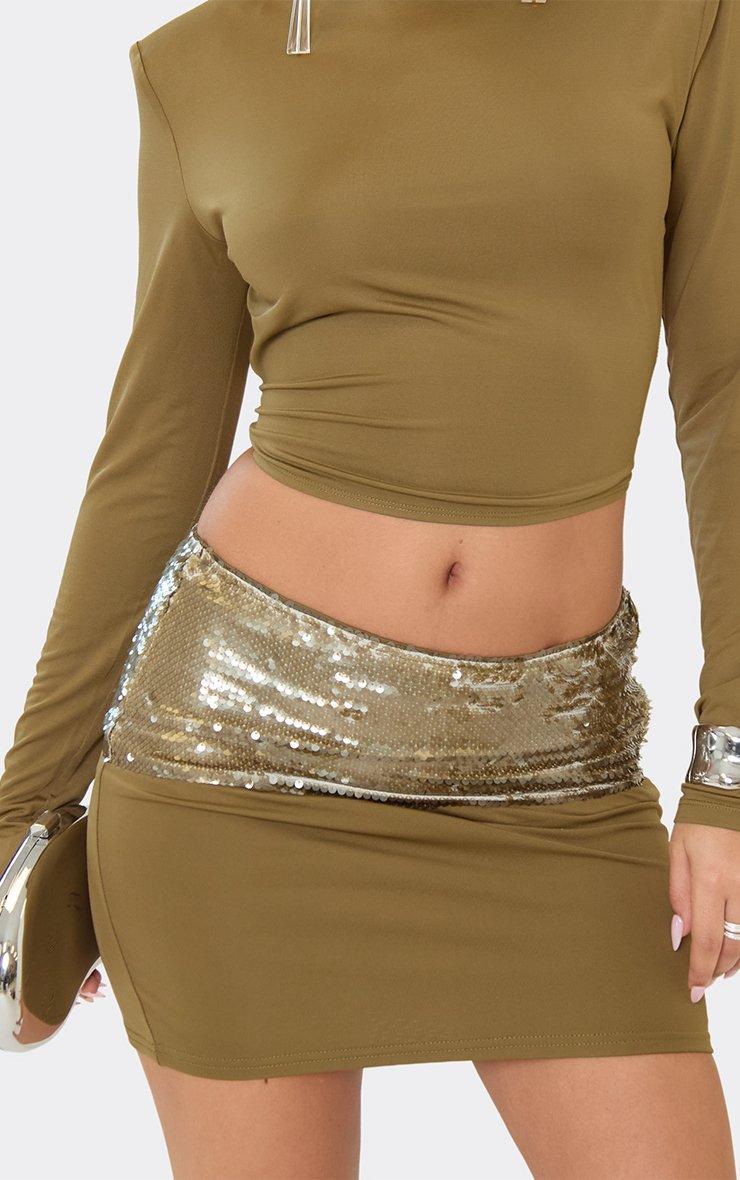 mid rise sequin waistband panel mini skirt in khaki