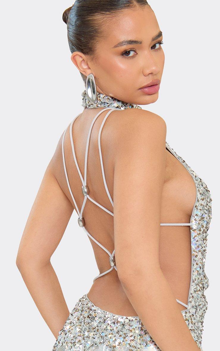 Strappy Embellished Open Back Detail Mini Dress In Silver