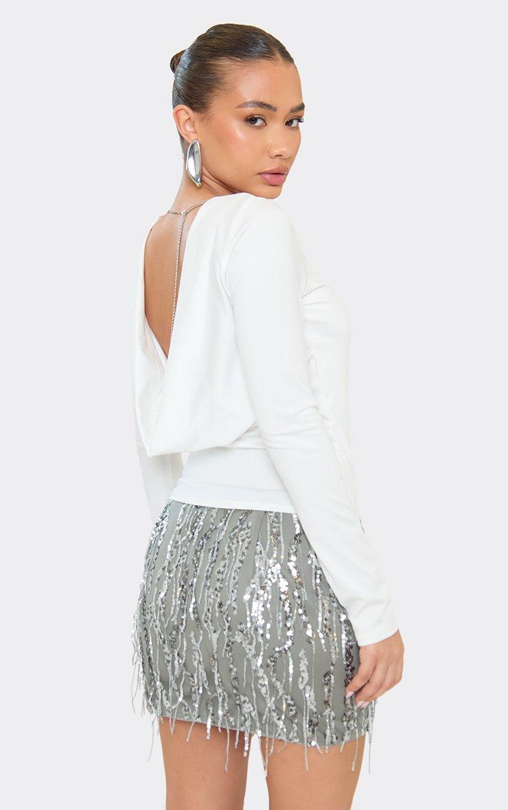 Mid Rise Bodycon Mini Skirt In Silver Liquid Satin