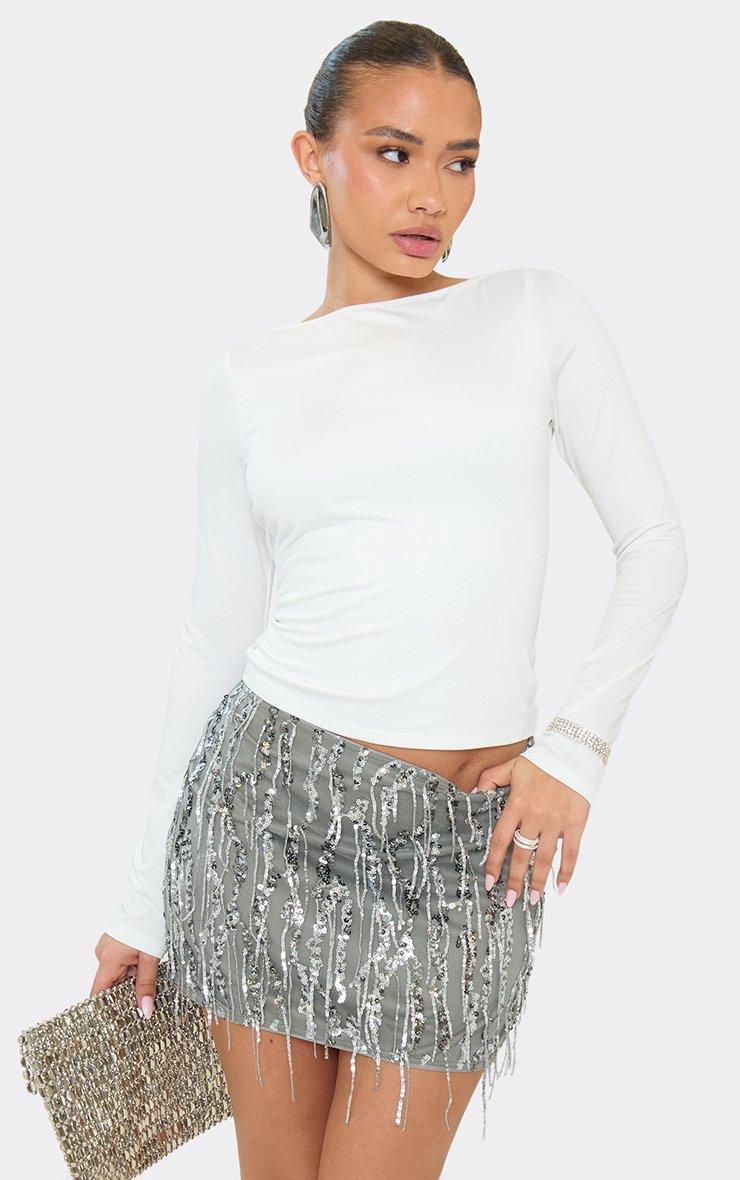 Mid Rise Mini Skirt In Silver Tassel Sequin