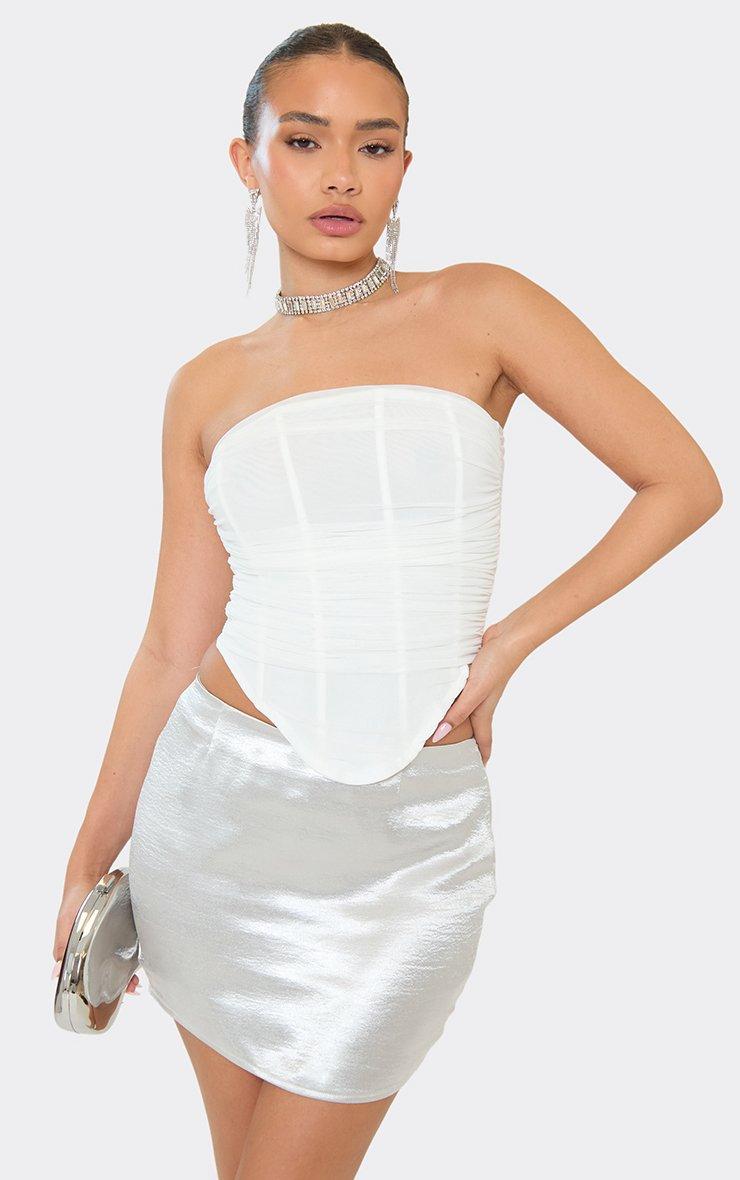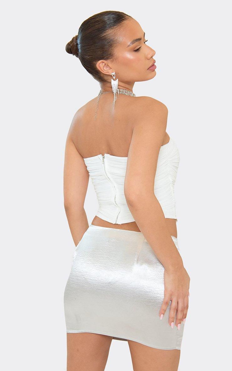 Mid Rise Bodycon Mini Skirt In Silver Liquid Satin