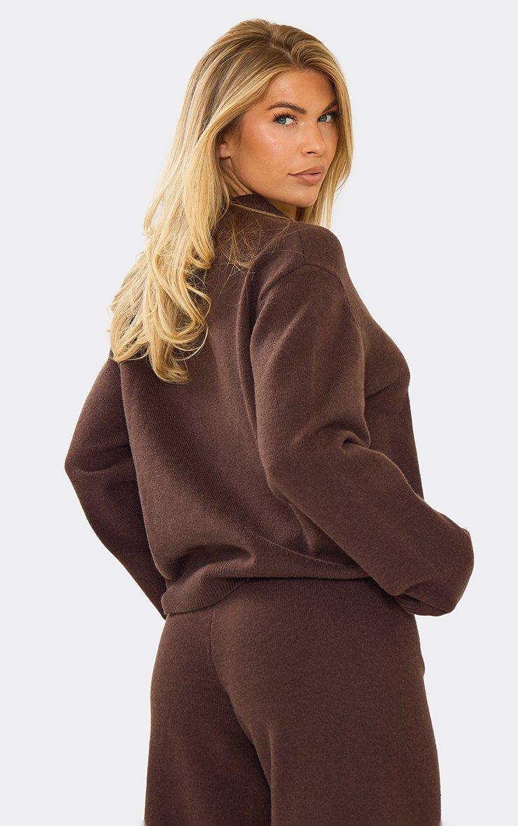 High Waist Wide Leg Trousers In Chocolate Brown Knit
