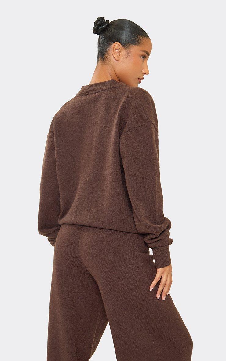 Oversized Embroidered Ego Logo Jumper In Chocolate Brown Knit