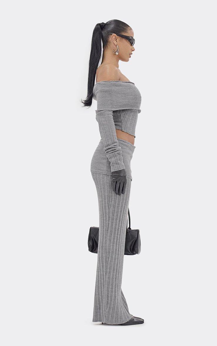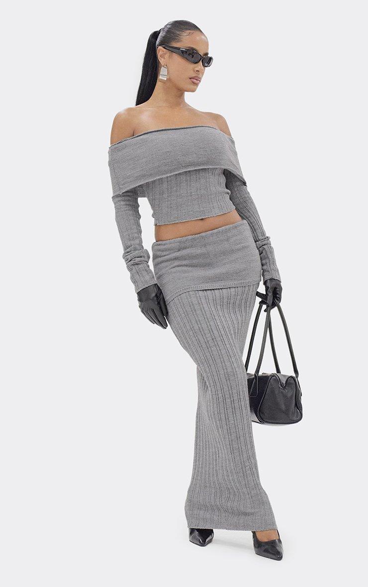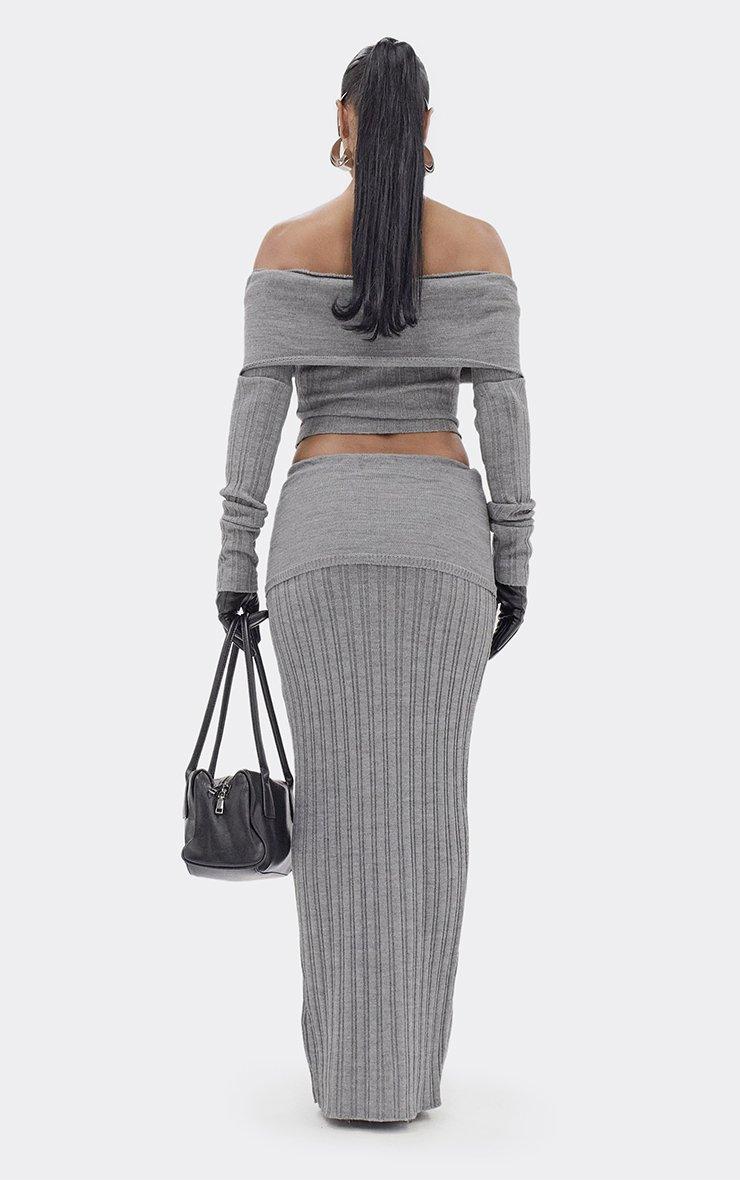 Long Sleeve Cinched Waist Jumper In Grey Rib Knit