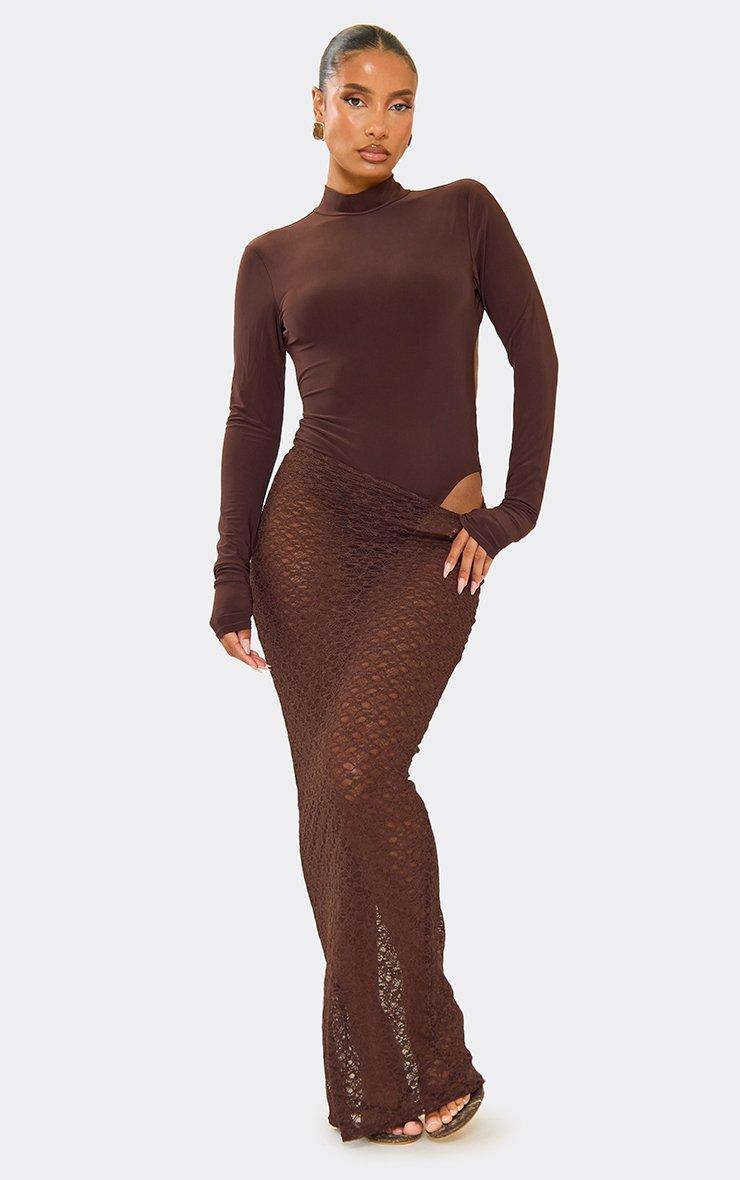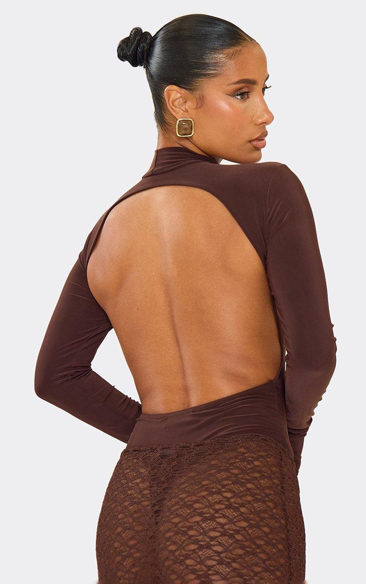 Long Sleeve High Neck Open Back Bodysuit In Chocolate Brown