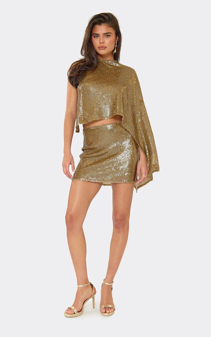 Mid Rise Mini Skirt In Gold Matt Sequin