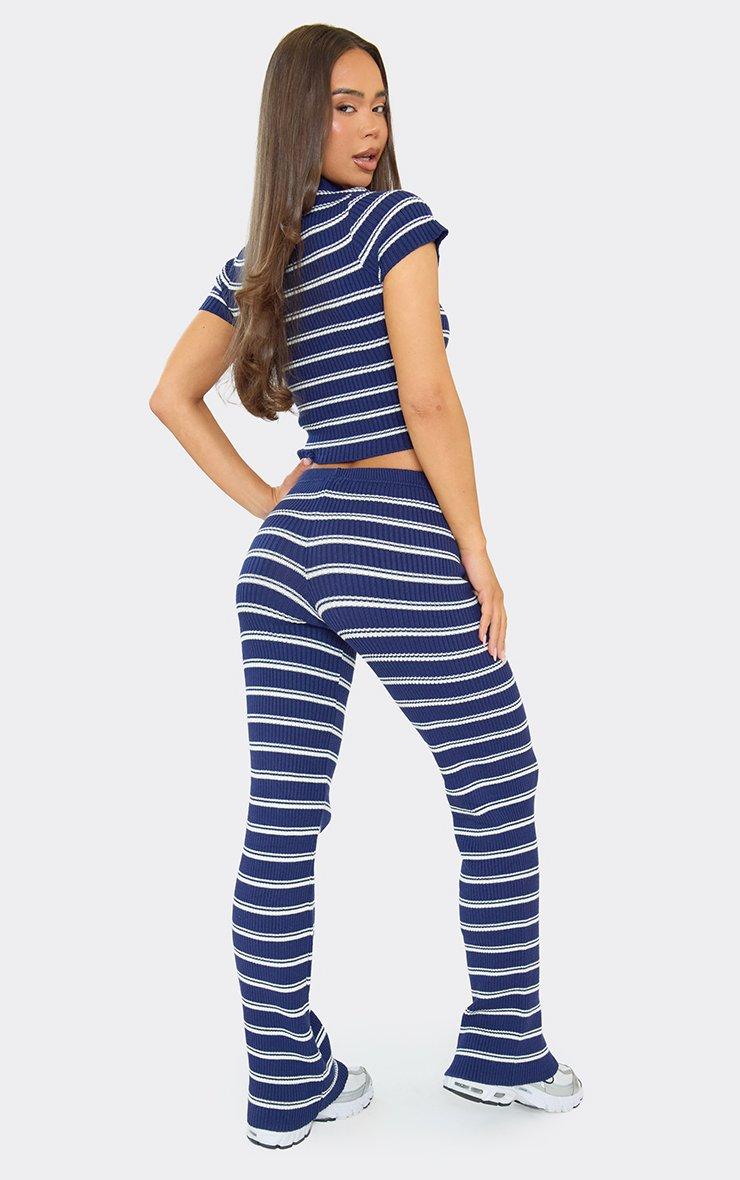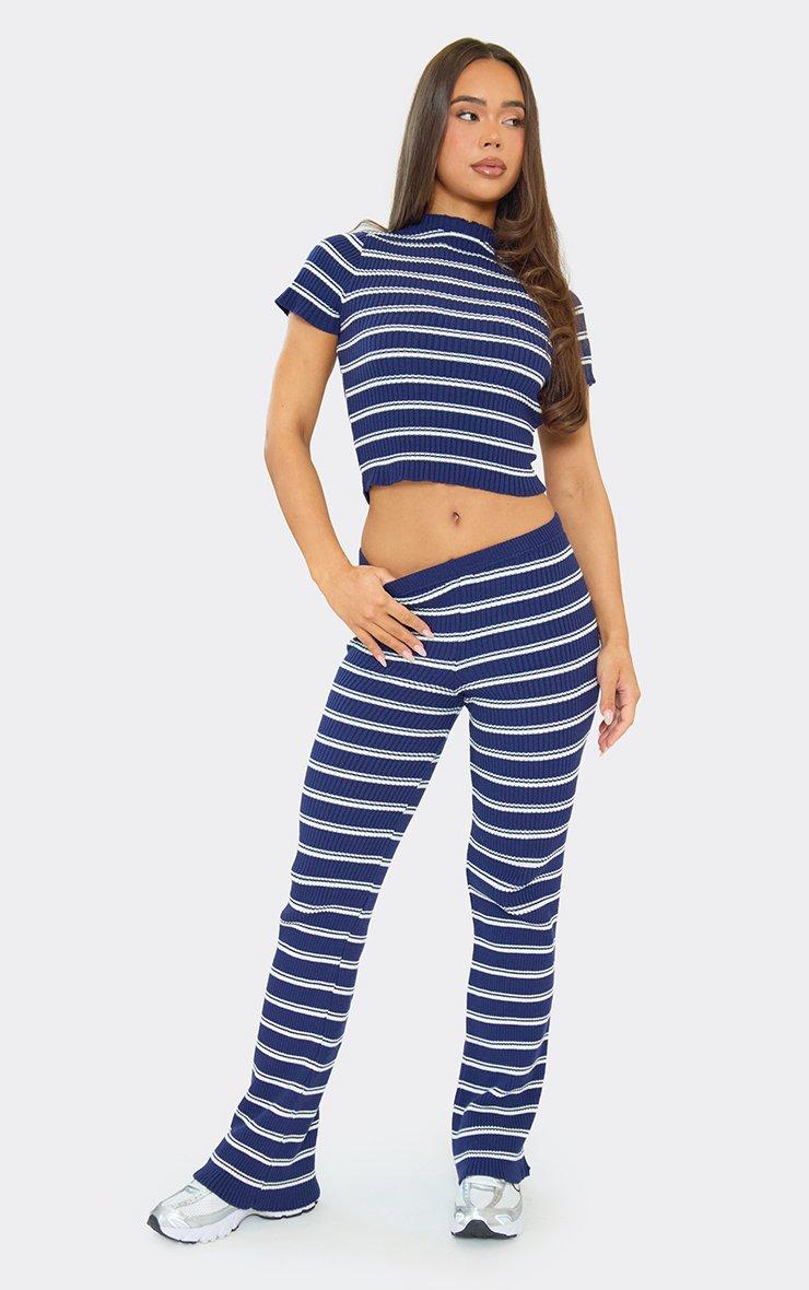 Short Sleeve Crop Top In Blue Stripe Rib Knit