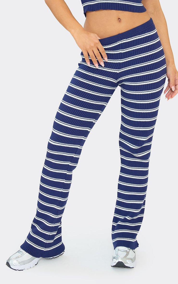 Mid Rise Ego Graphic Wide Leg Trousers In Blue Knit