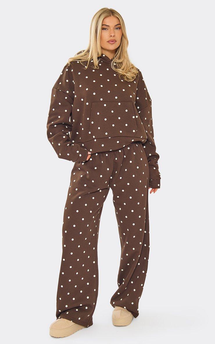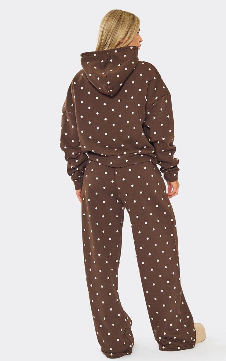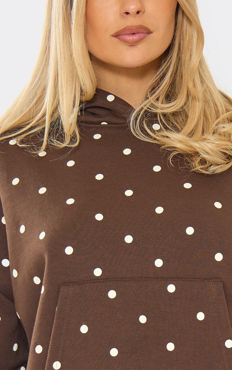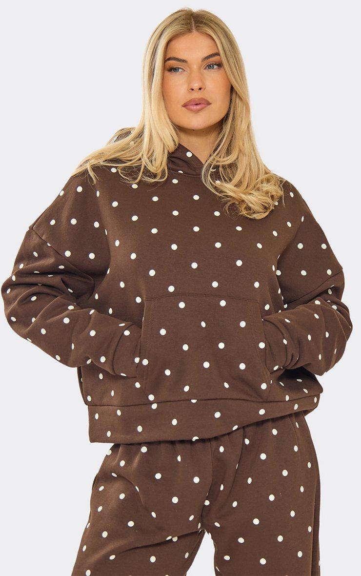 Long Sleeve Boxy Hoodie In Brown Polka Dot