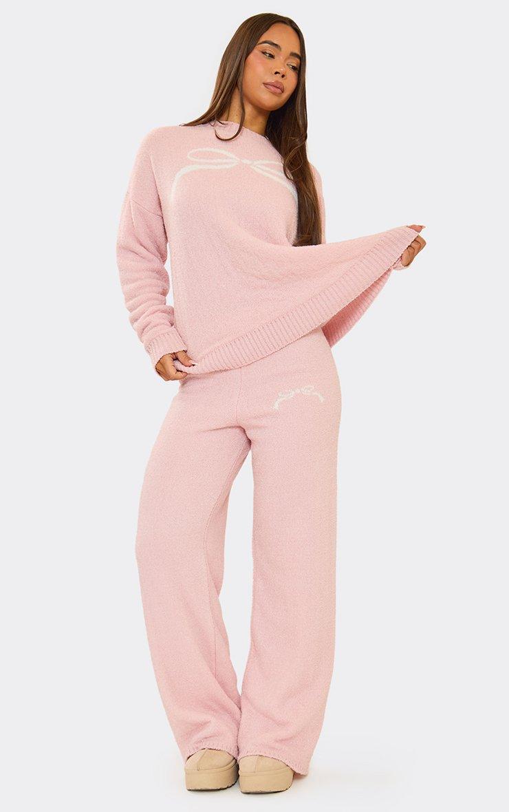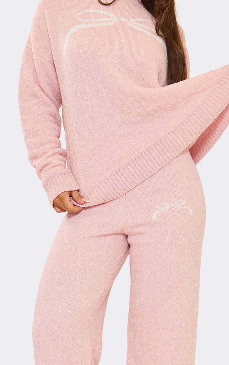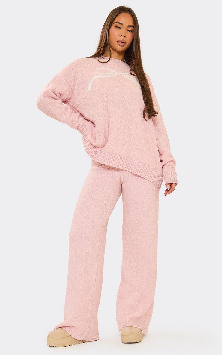 Long Sleeve Bow Graphic Detail Oversized Jumper In Pink Fluffy Knit