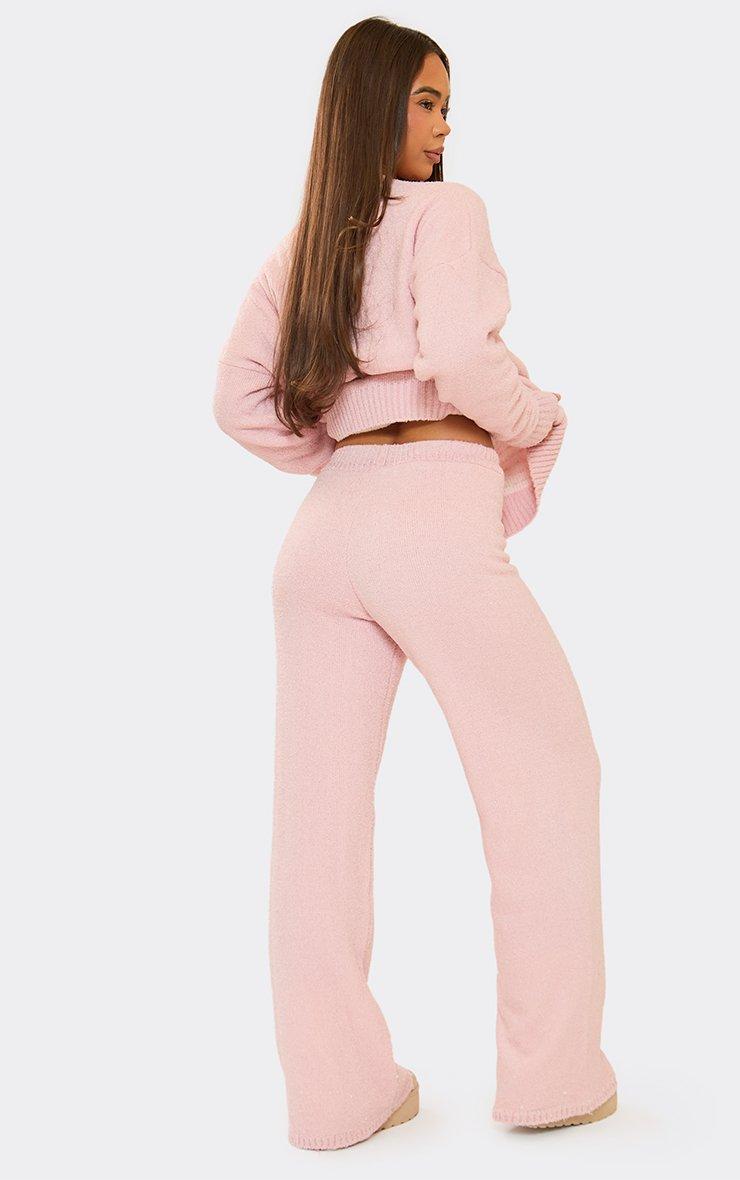 High Waist Swirl Detail Wide Leg Trousers In Pink Knit